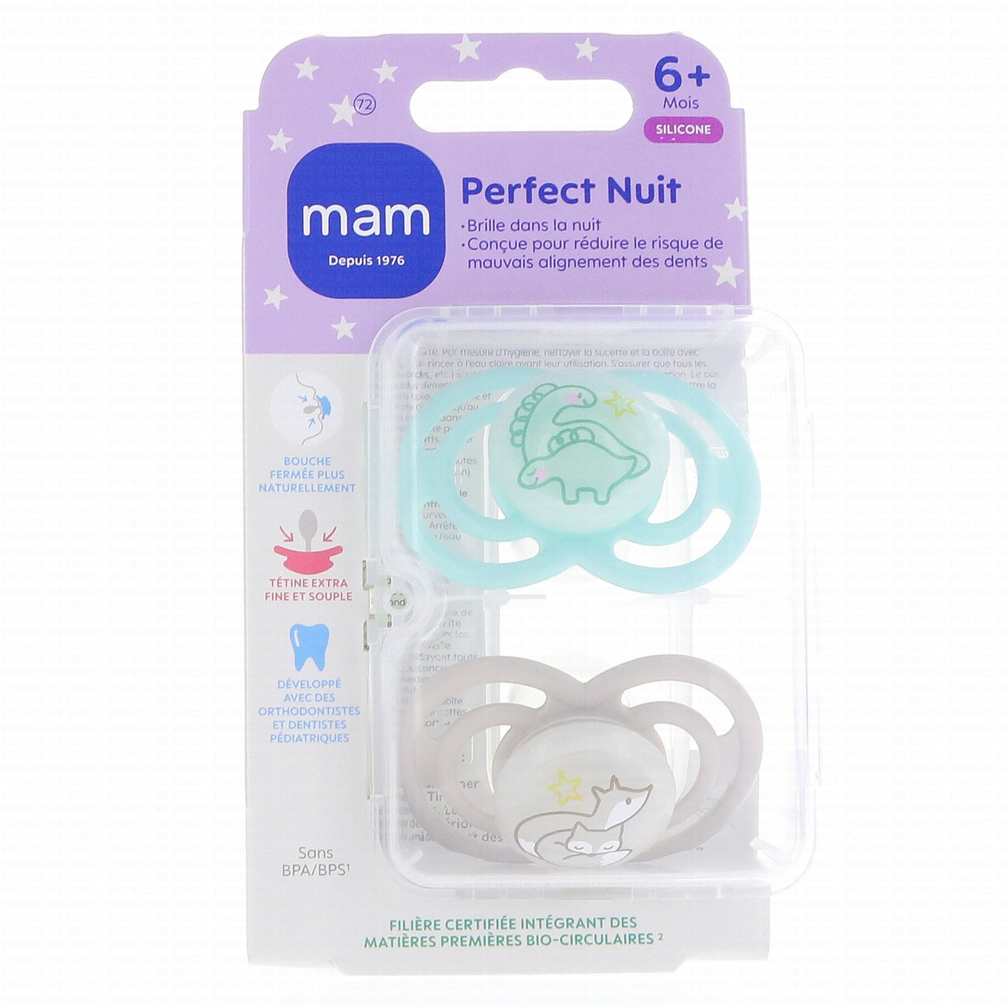 MAM Sucettes +6 mois perfect nuit silicone animaux