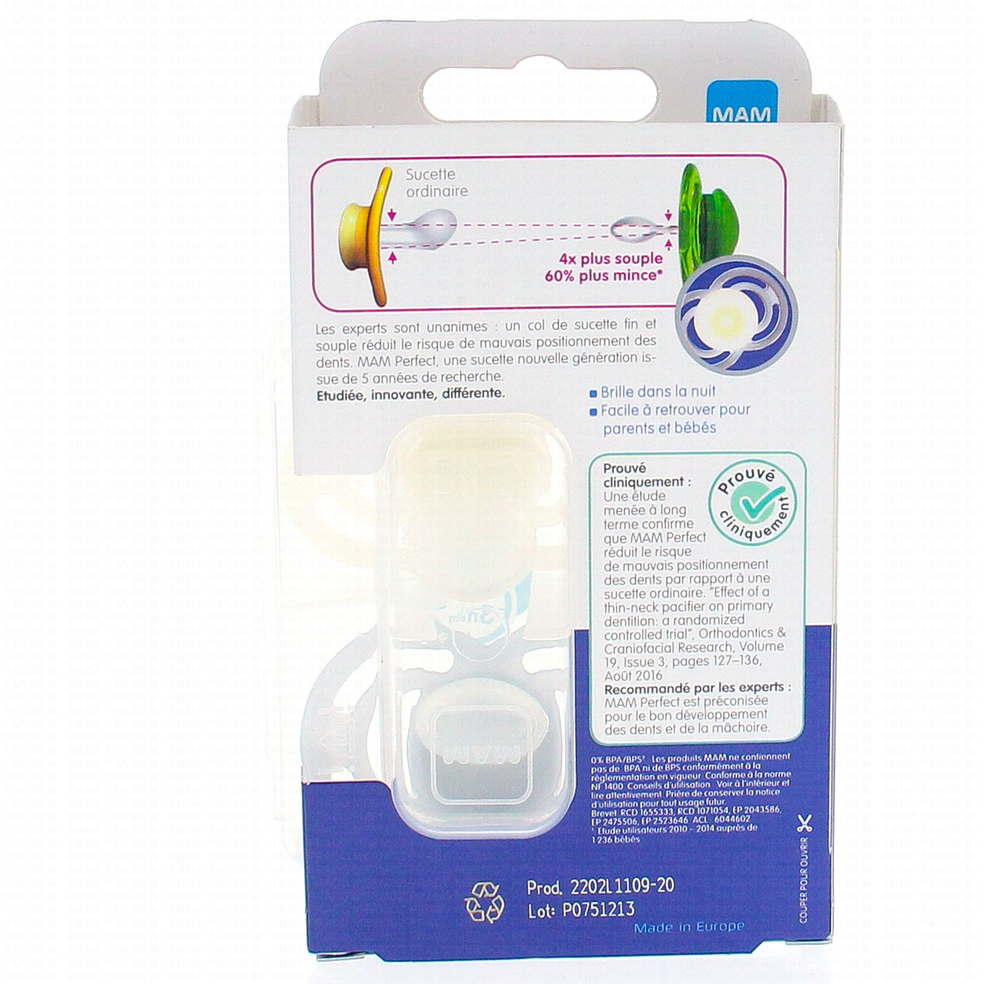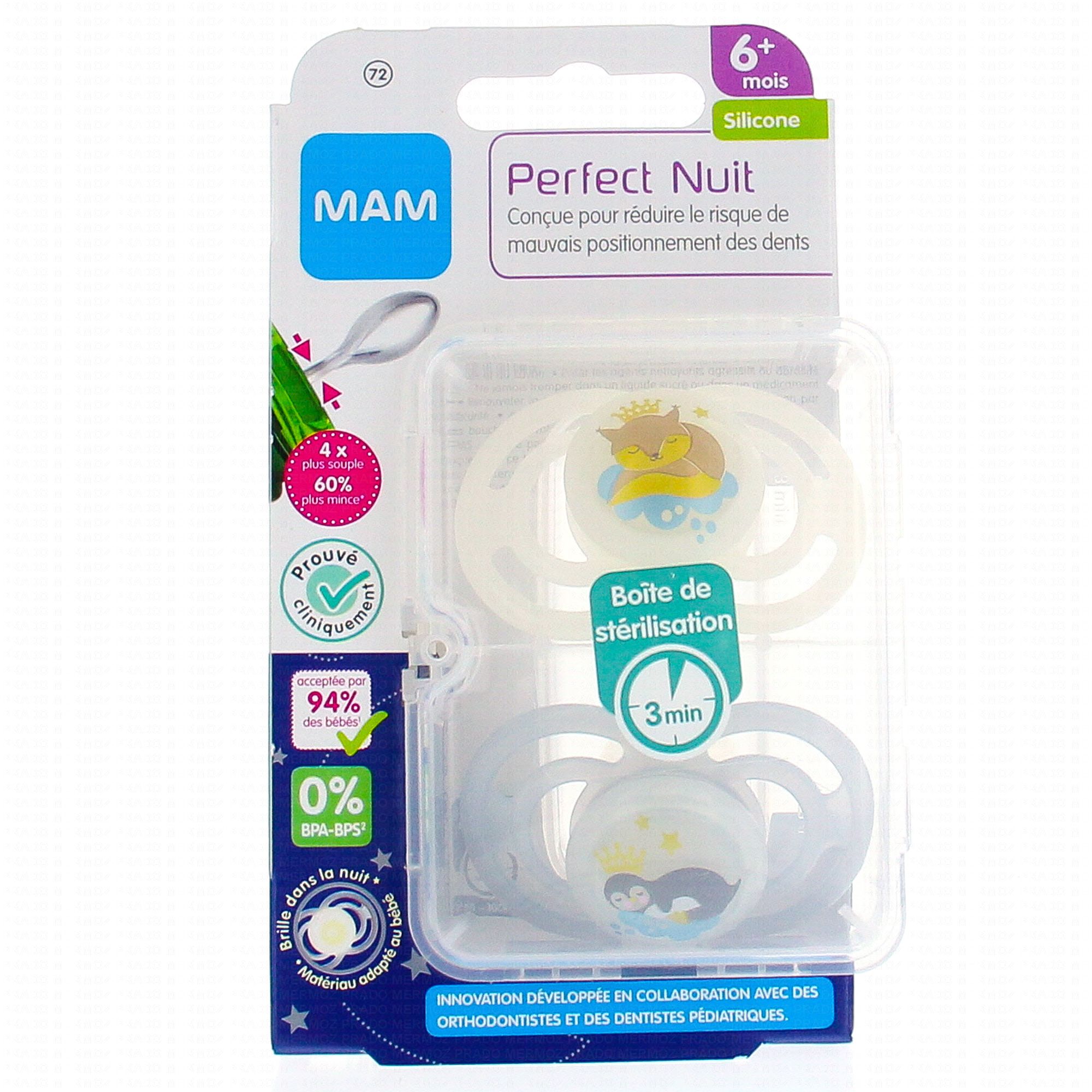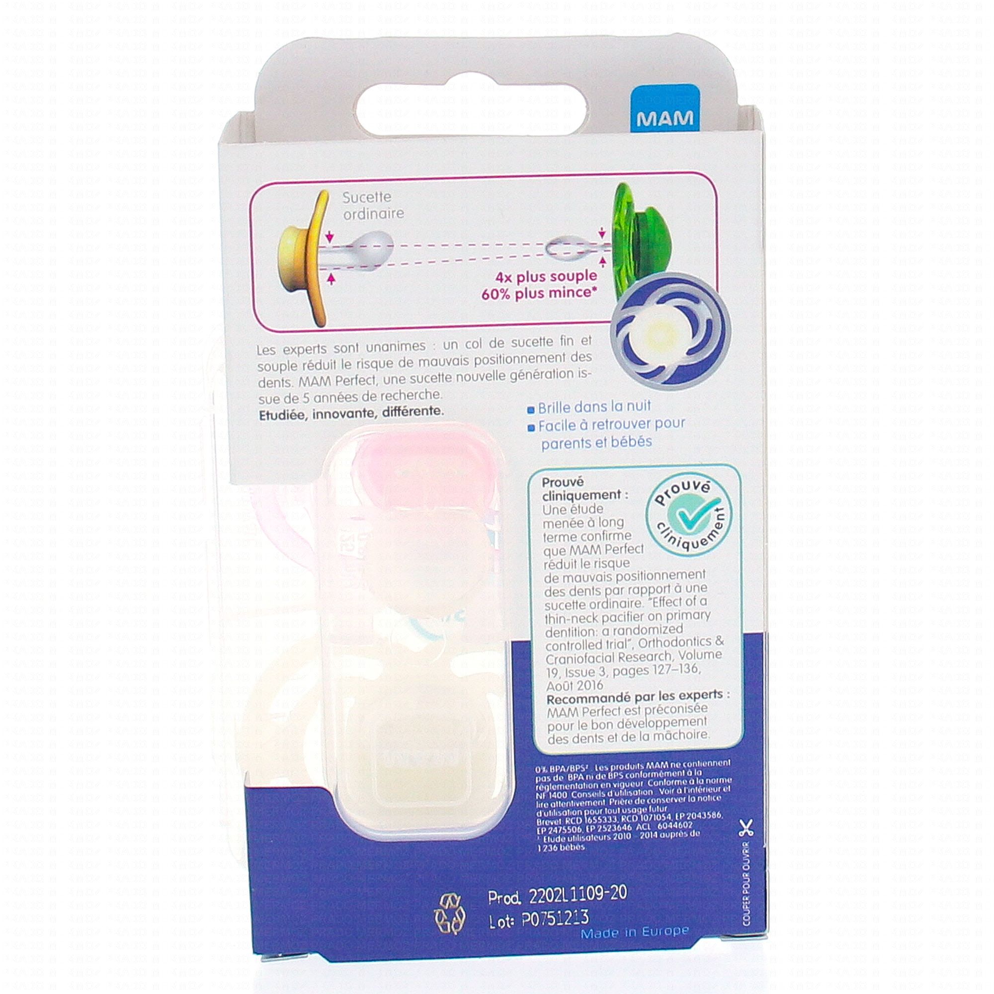 MAM Sucettes +6 mois perfect nuit silicone blanc / rose clair