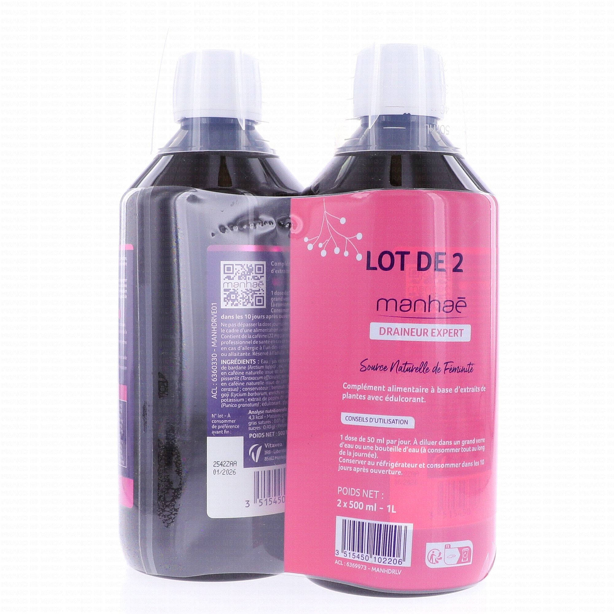MANHAE Draineur Expert 2x500 ml contient les éléments suivants :