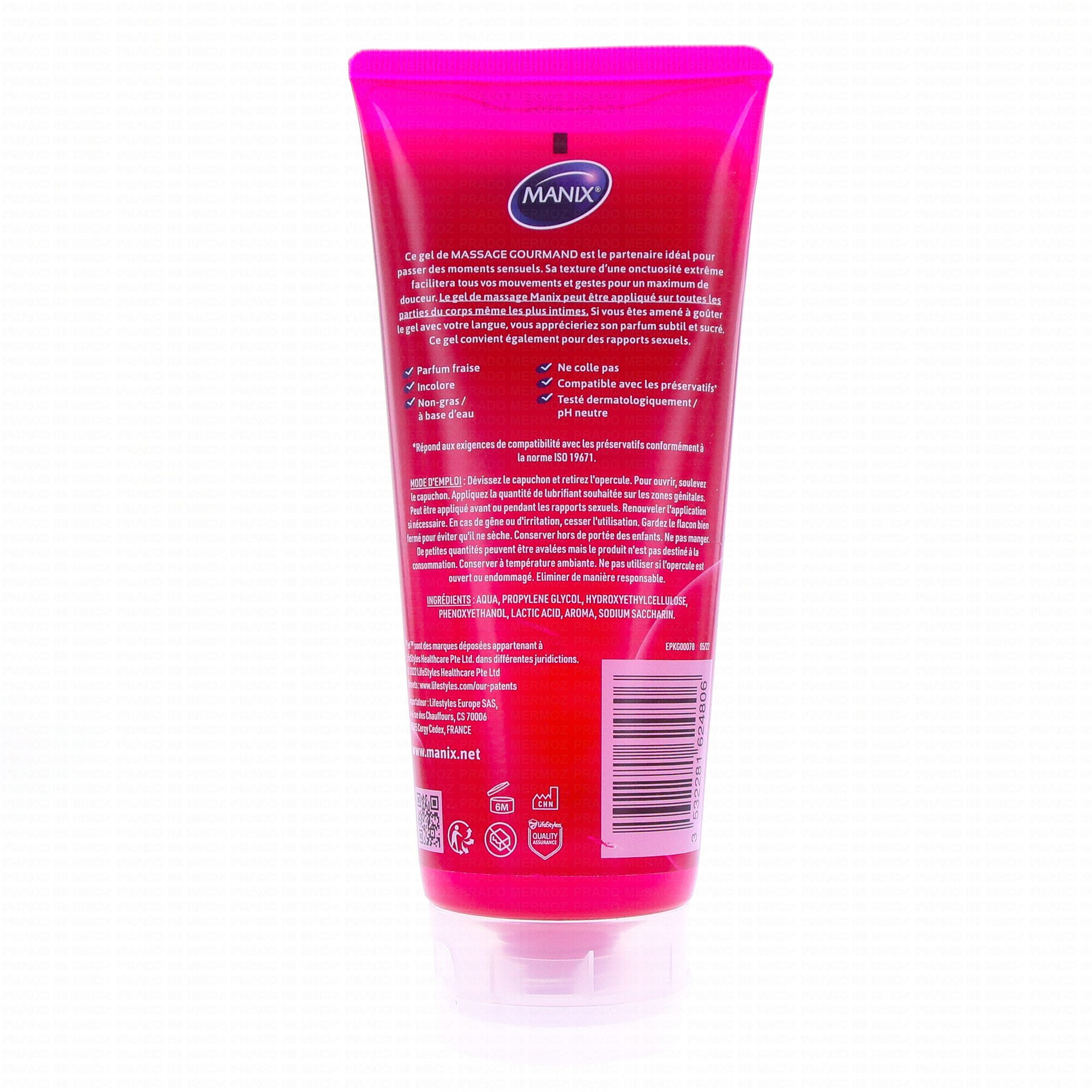 Ce gel de massage gourmand est idéal pour passer des moments sensuels: avec sa texture onctueuse qui facilite tout vos gestes pour offrir un maximum de douceur, il s'applique sur toutes les parties du corps même les plus intimes, de plus il est comestible et offre un goût subtil et sucré de fraise.