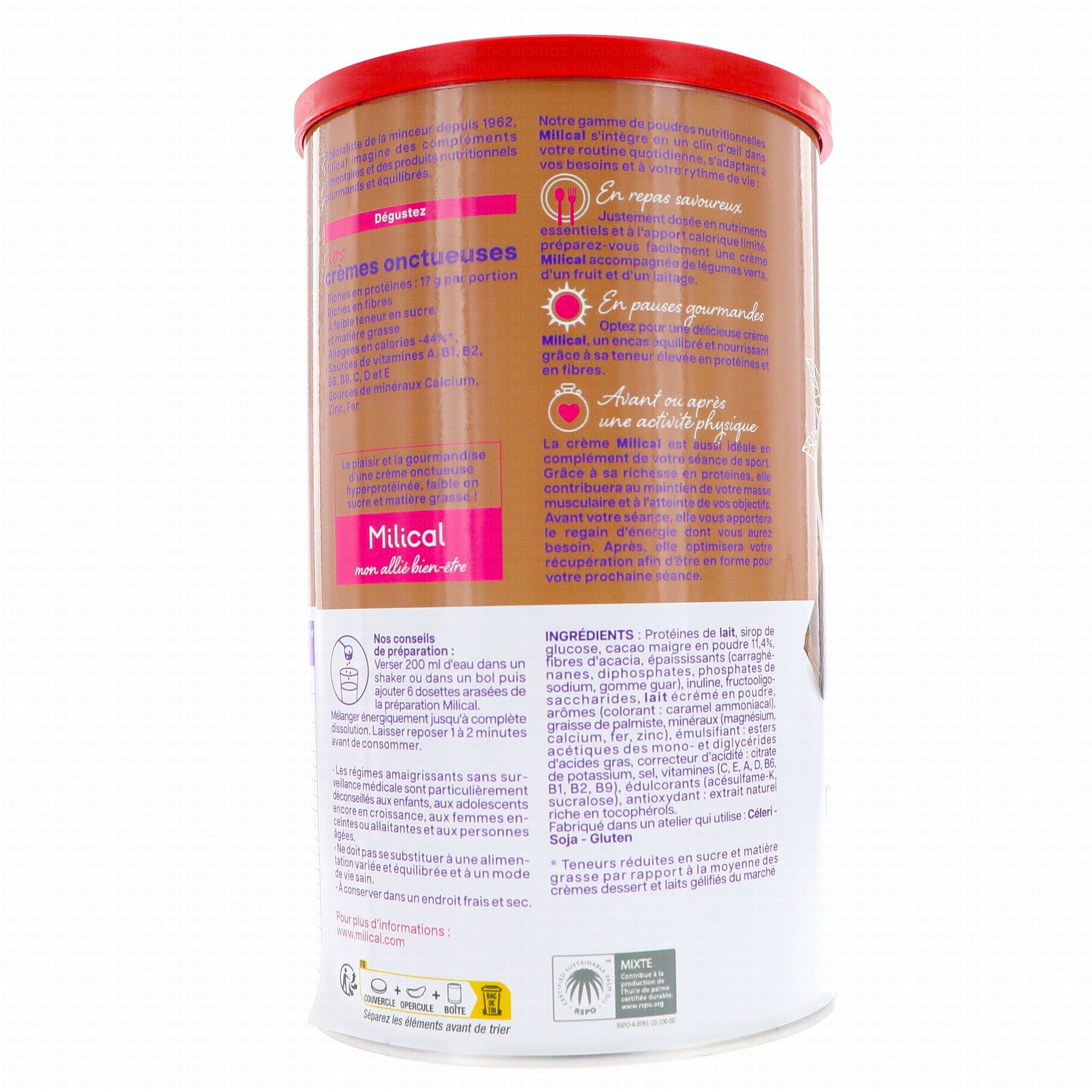 MILICAL Crèmes minceur hyperprotéinées goût chocolat 540g contient les éléments suivants :