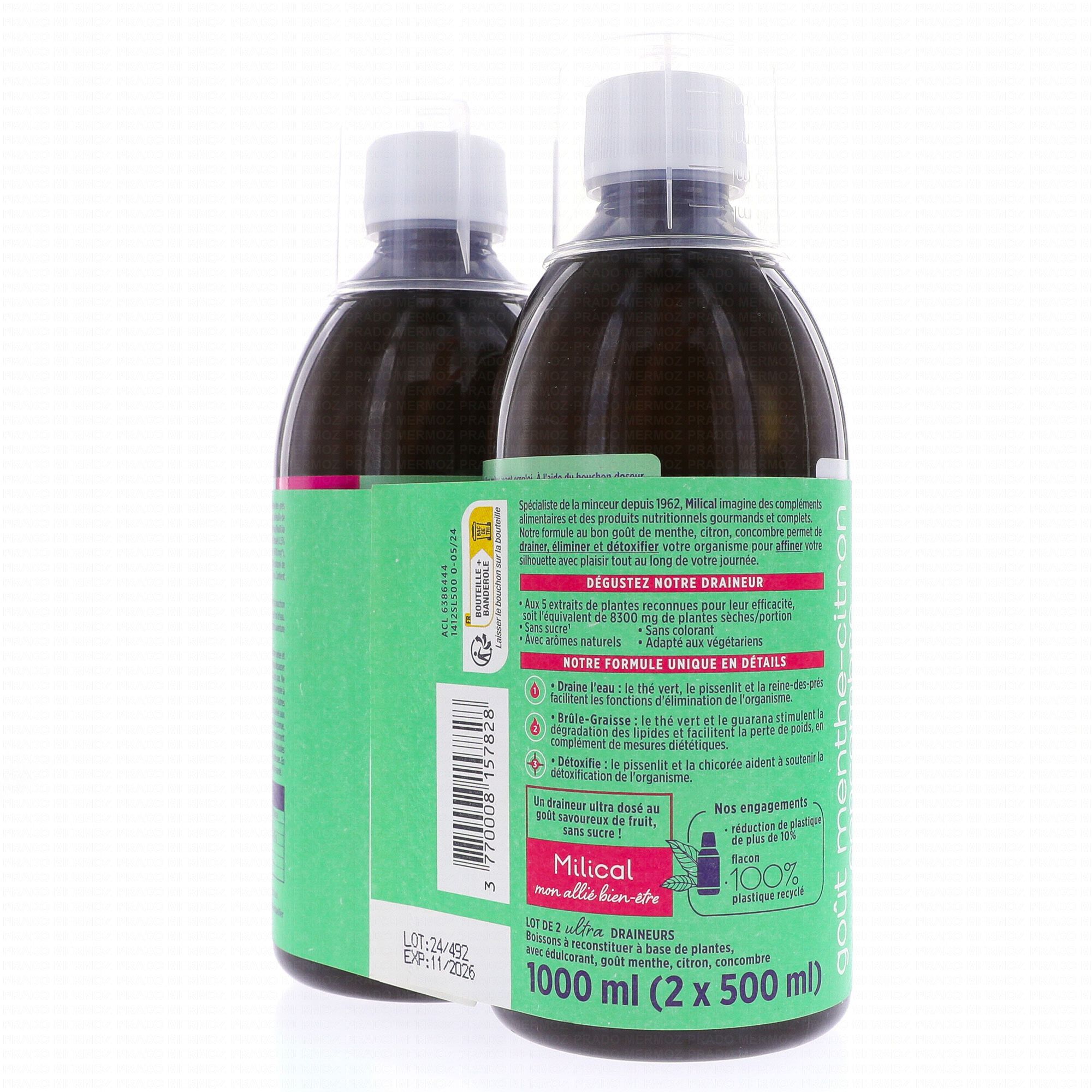 MILICAL Draineur Ultra goût Menthe, Citron, Concombre 500mlx2 contient les éléments suivants :