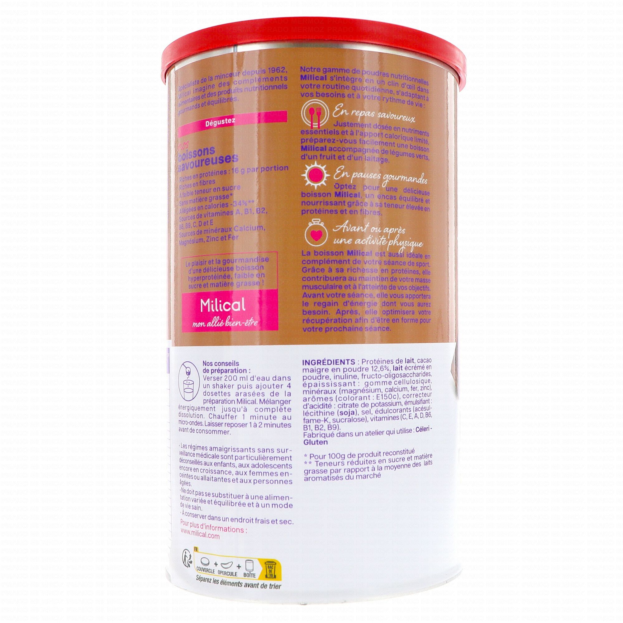 MILICAL Boisson hyperprotéinée chocolat 420g contient les éléments suivants :