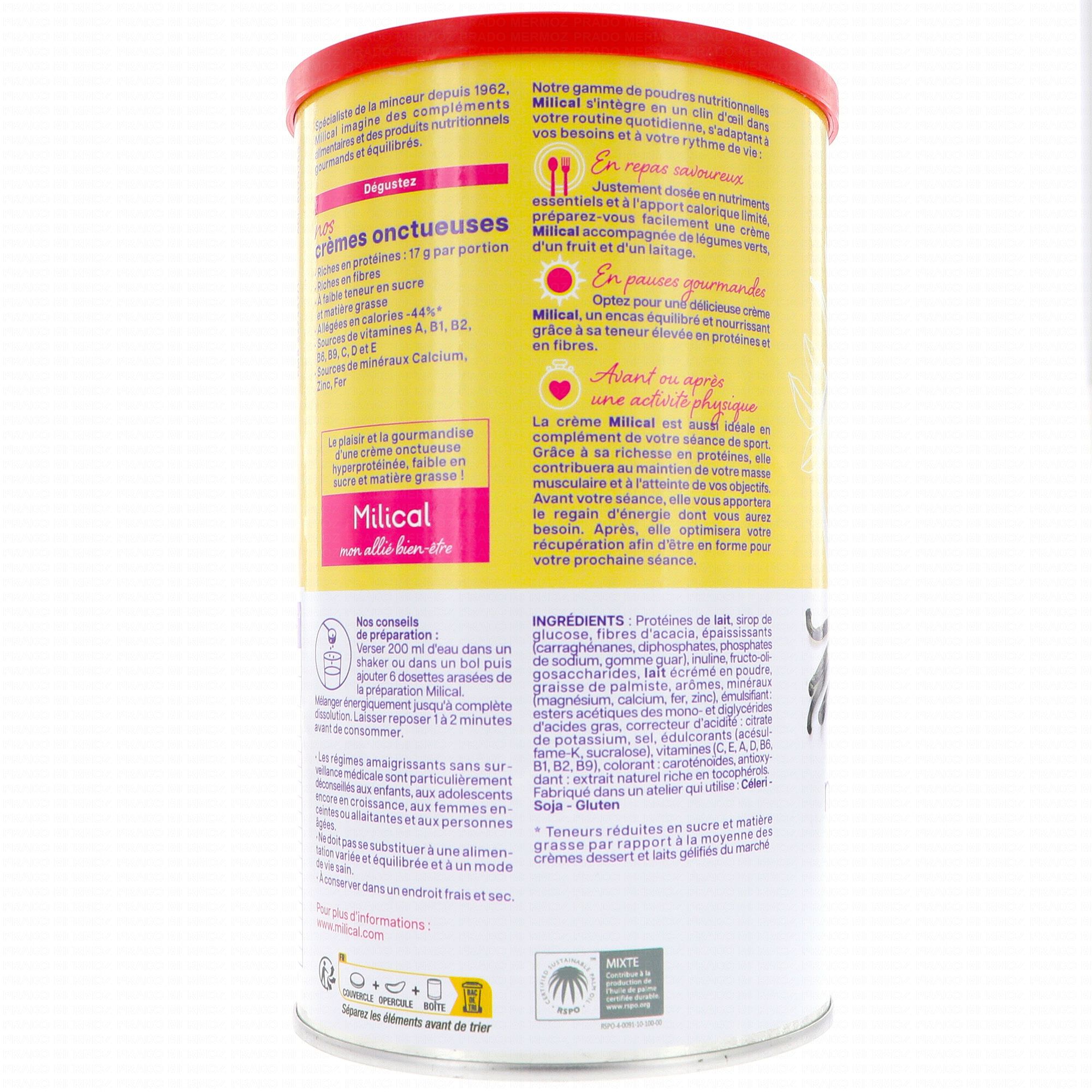 MILICAL Nutrition Crèmes minceur saveur vanille 405 g contient les éléments suivants :