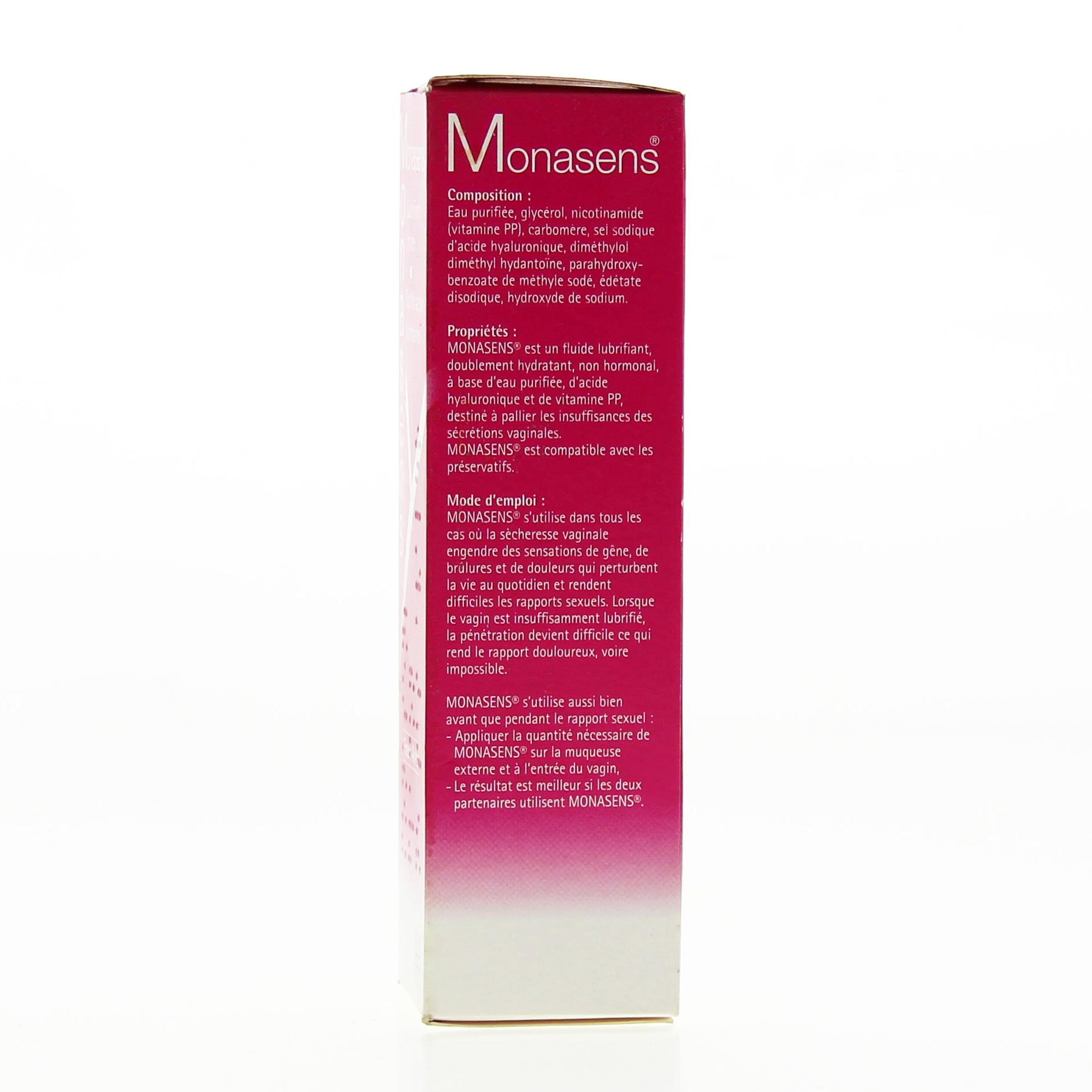 Ce lubrifiant est un fluide doublement hydratant, non hormonal afin de compenser les insuffisances des sécrétions vaginales. Le lubrifiant Monasens peut être utilisé dans tous les cas de sécheresse vulvo-vaginale, quelle qu'en soit l'origine.