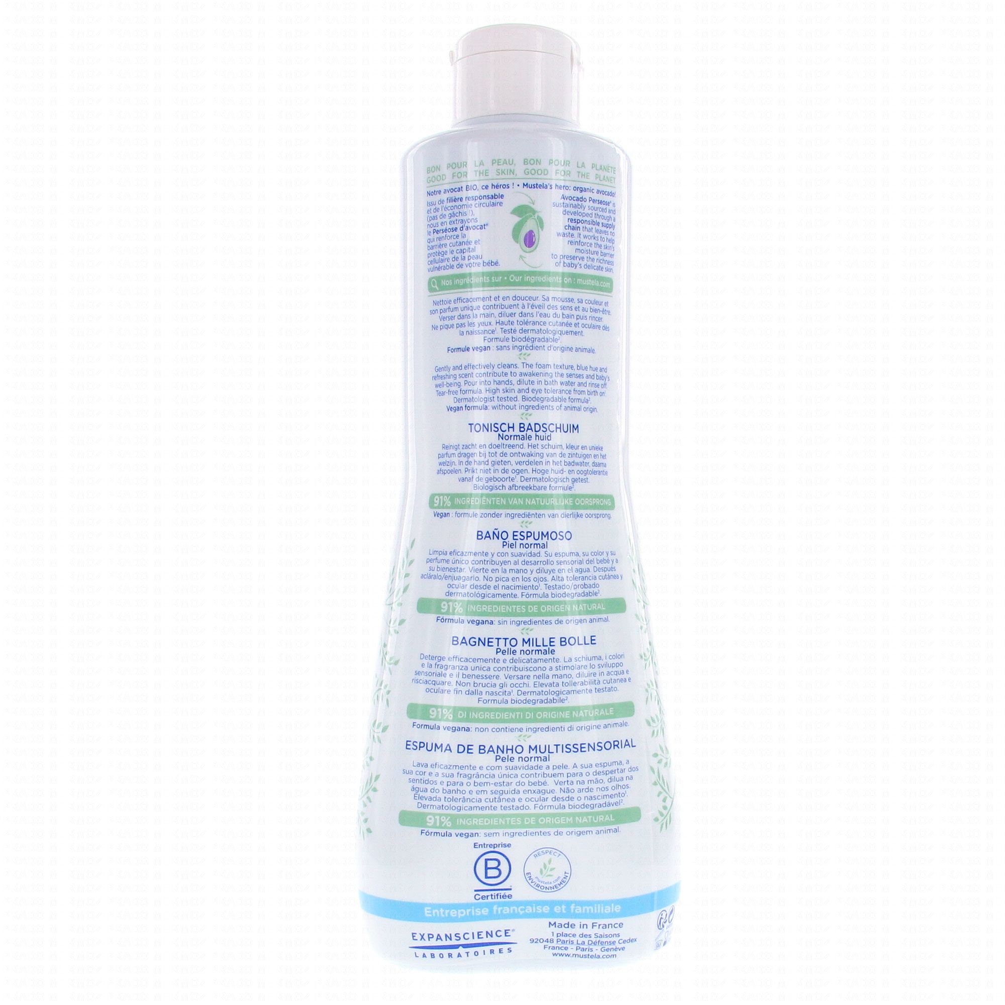 Cette mousse Mustela à l'avocat nettoie efficacement, sans agression, ni dessèchement tout en respectant la barrière cutanée de la peau. Sa couleur et son parfum unique contribuent à l'éveil des sens et sa formule quant à elle permet une hydratation maximum. En effet, les laboratoires Mustela ont imaginé une formule vegan (sans ingrédients d'origine animale), à partir de perséose d'avocat BIO qui permet de protéger immédiatement la peau de votre enfant. L'extrait de bleuet des champs permet de réconforter, apaiser et limiter les démangeaisons. Les sels marins, riches en oligo-éléments permettent quant à eux de maintenir un taux d'hydratation optimal.