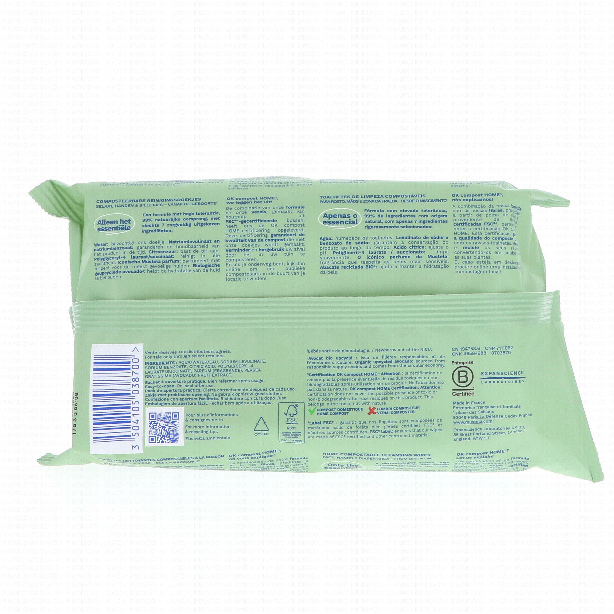 Les lingettes sont composées avec des fibres d'origine végétale, qui sont biodégradables, compostables et sans plastique. Les lingettes nettoyantes à l'avocat BIO.
