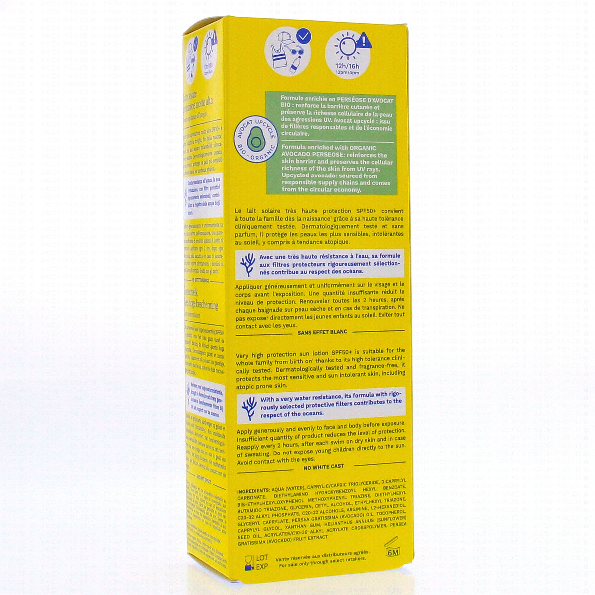 Le Lait solaire très haute protection SPF50+ à l'avocat bio protège des UVA et UVB toute la famille dès la naissance*, y compris les peaux à tendance atopique et femmes enceintes. Facile à appliquer, il résiste bien à l'eau et au sable.