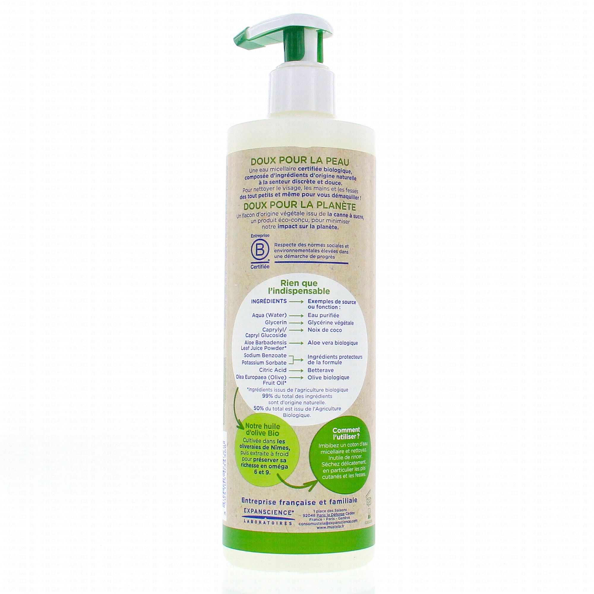 Eau micellaire bio sans parfum sans rincage dès la naissance flacon pompe 400ml