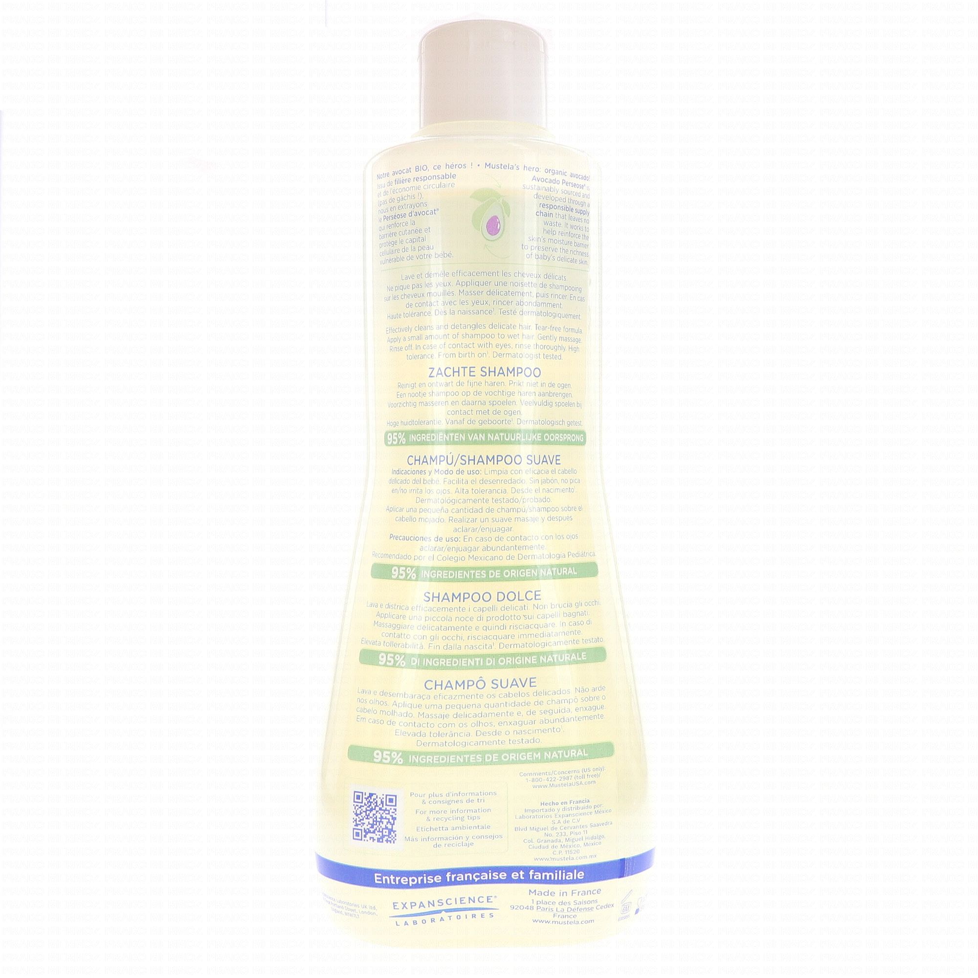 Ce shampoing doux MUSTELA lave et démêle efficacement les cheveux délicats de votre enfant dés la naissance grâce à sa formule riche en avocat issu de culture BIO. En effet, les laboratoires MUSTELA utilisent le Perséose d'avocat qui renforce la barrière cutanée et protège le capital cellulaire de la peau. Idéal, son utilisation quotidienne permettra de laver et hydrater en douceur les cheveux de votre bébé.