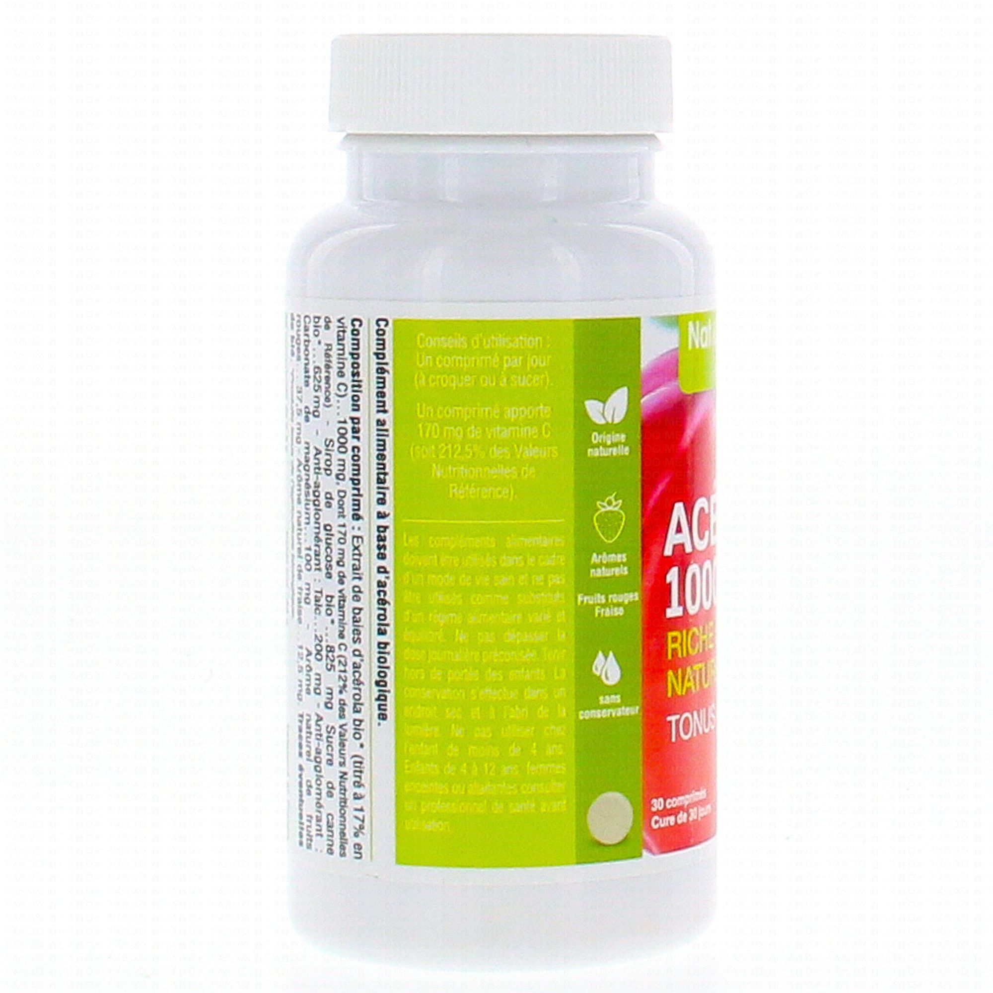NAT & FORM Acérola 1000 Bio 30 comprimés contient les éléments suivants :