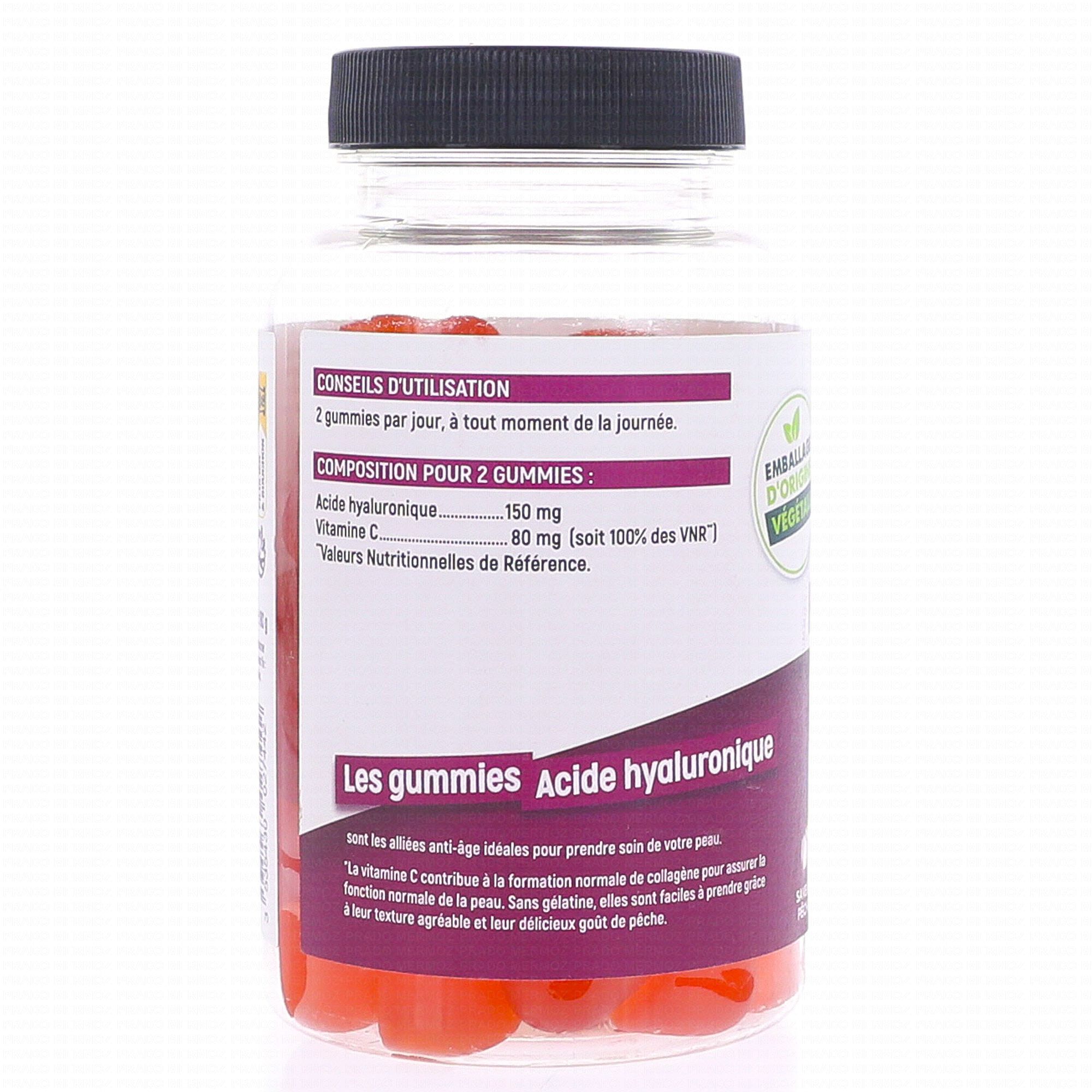 NAT&FORM Acide Hyaluronique Anti-âge x60 Gummies est un complément alimentaire qui contribue à garder l'élasticité de la peau grâce à la présence d'Acide hyaluronique. La vitamine C favorise la protection des cellules contre le stress oxydatif.