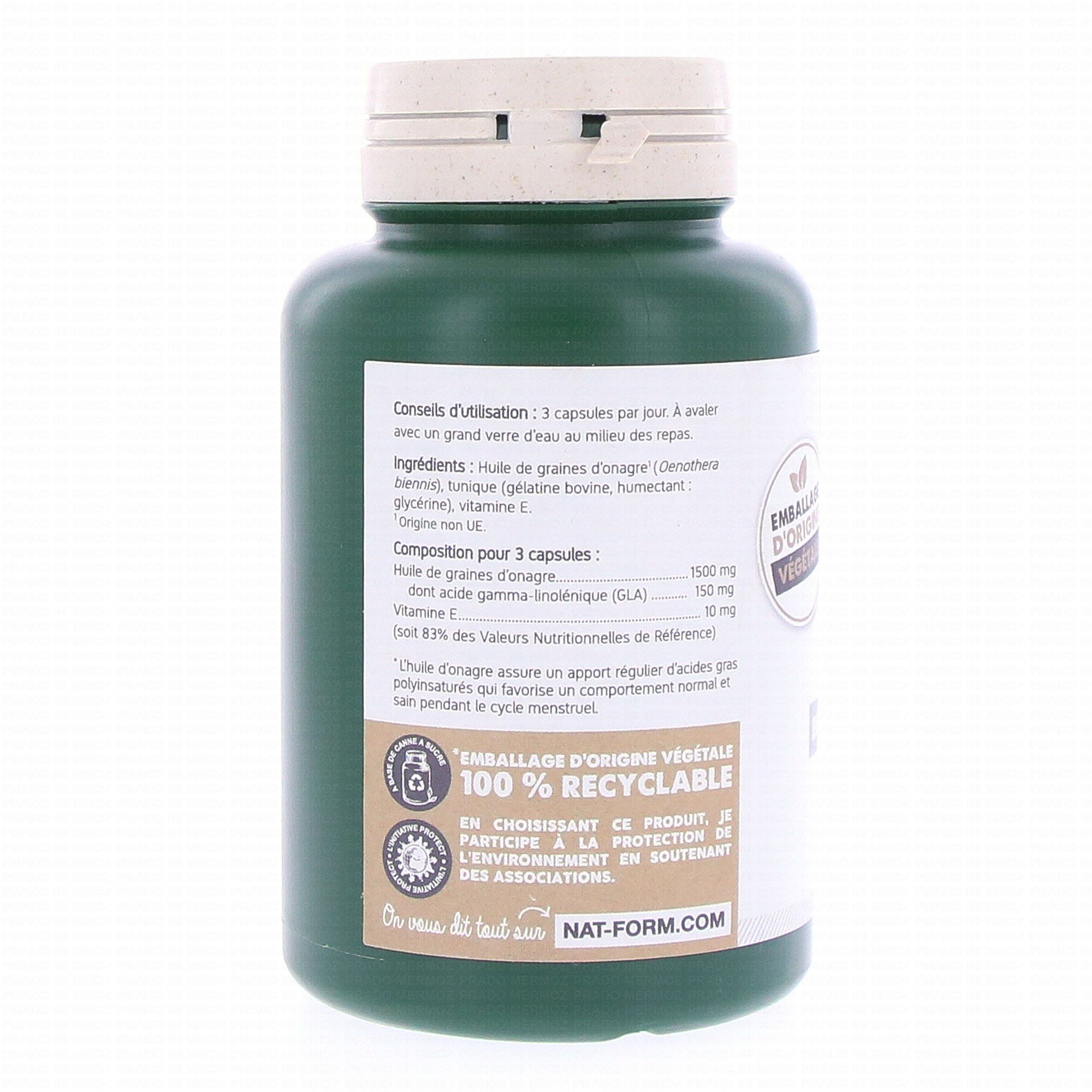 NAT & FORM Huile d'Onagre 200 capsules contient les éléments suivants :