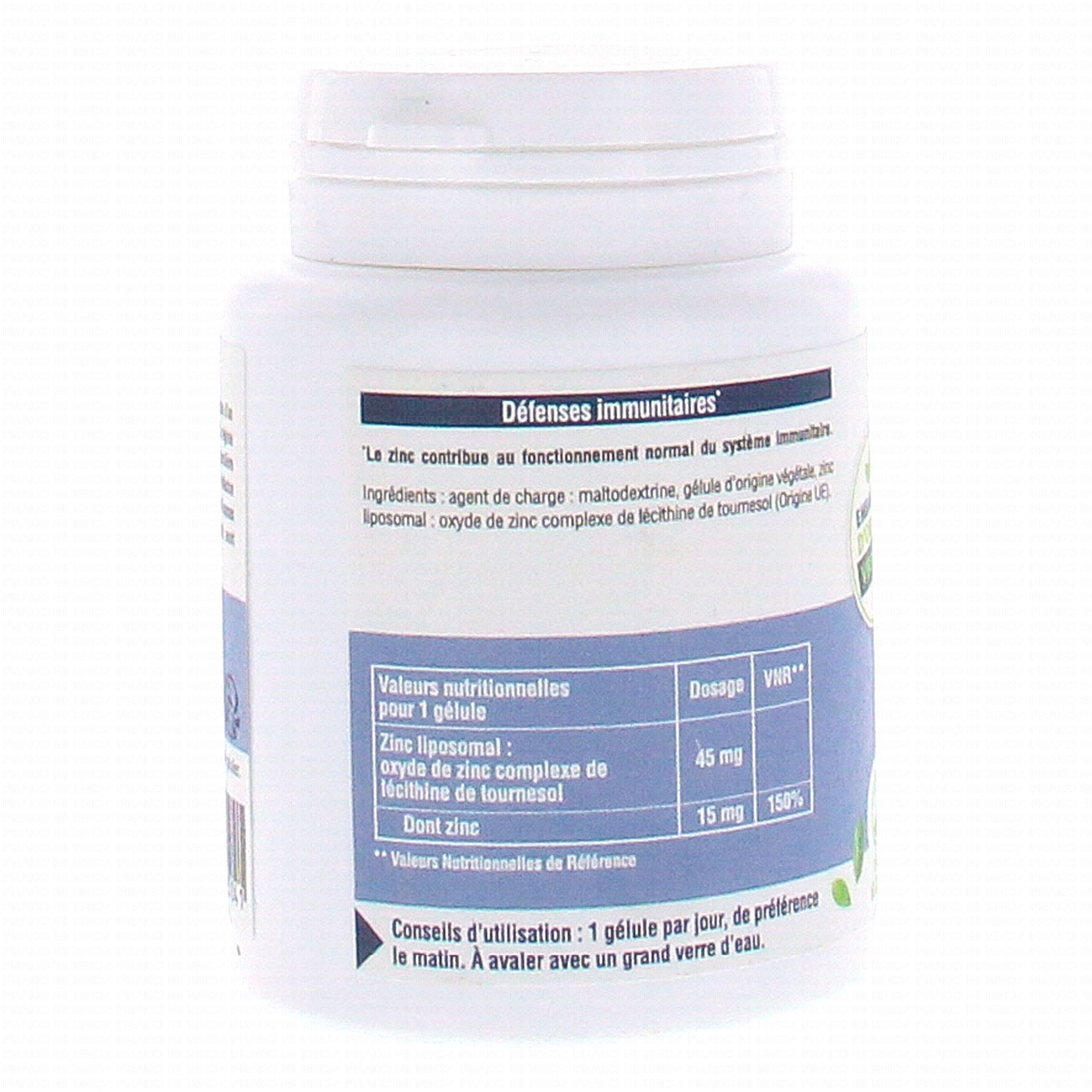 NAT & FORM Zinc Liposomal x60 gélules contient les éléments suivants :