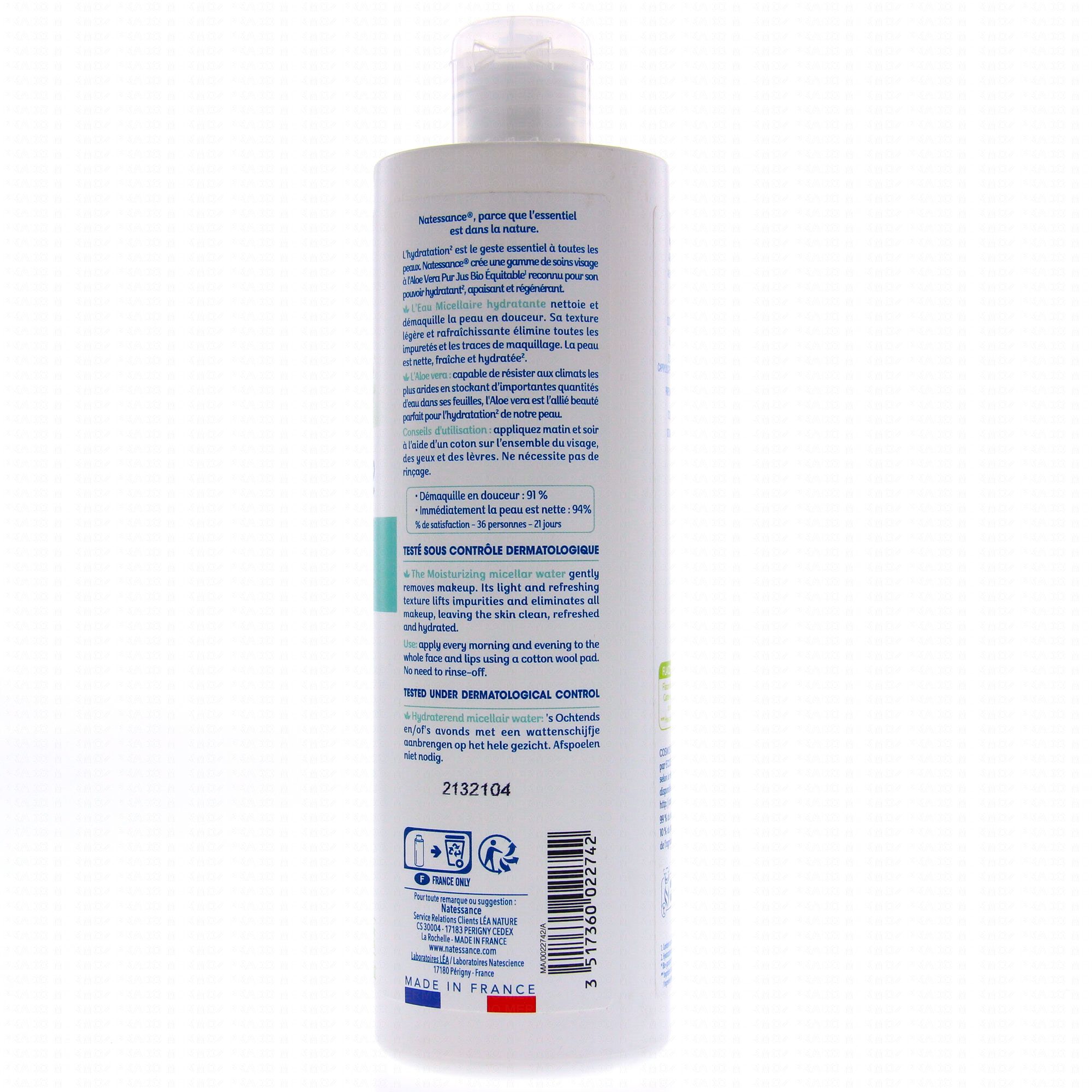 NATESSANCE Eau micellaire hydratante Aloé vera bio 400ml