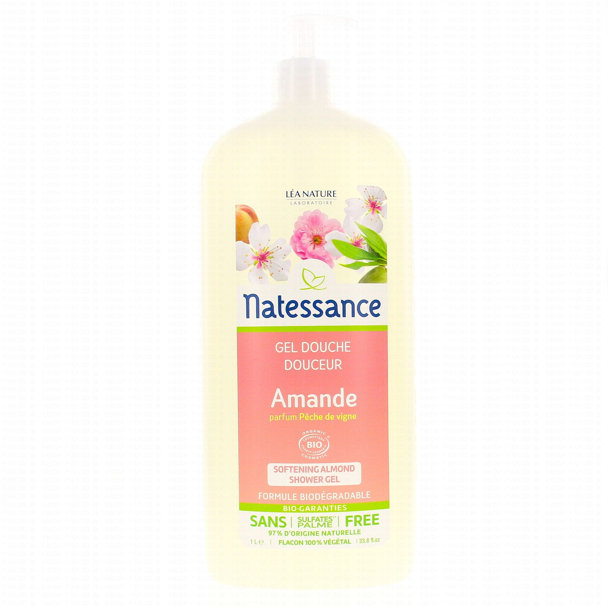 NATESSANCE Gel douche amande parfum pêche de vigne bio 1l