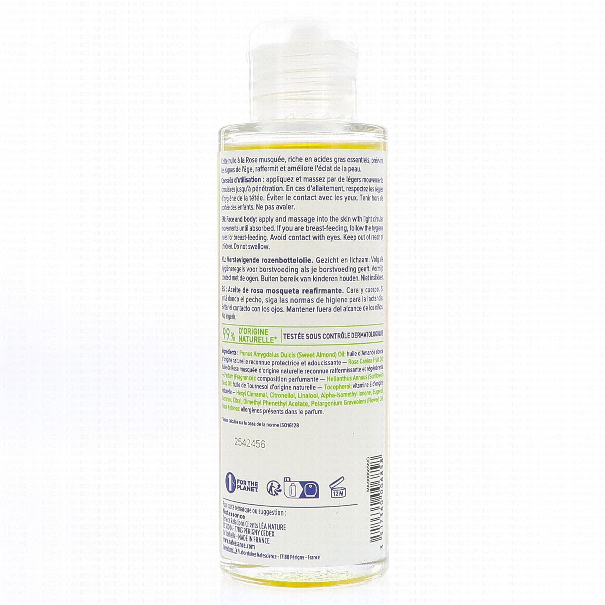 Formulé avec : Huile de rose musquée, huile d'amande douce, vitamine E naturelle, parfum.