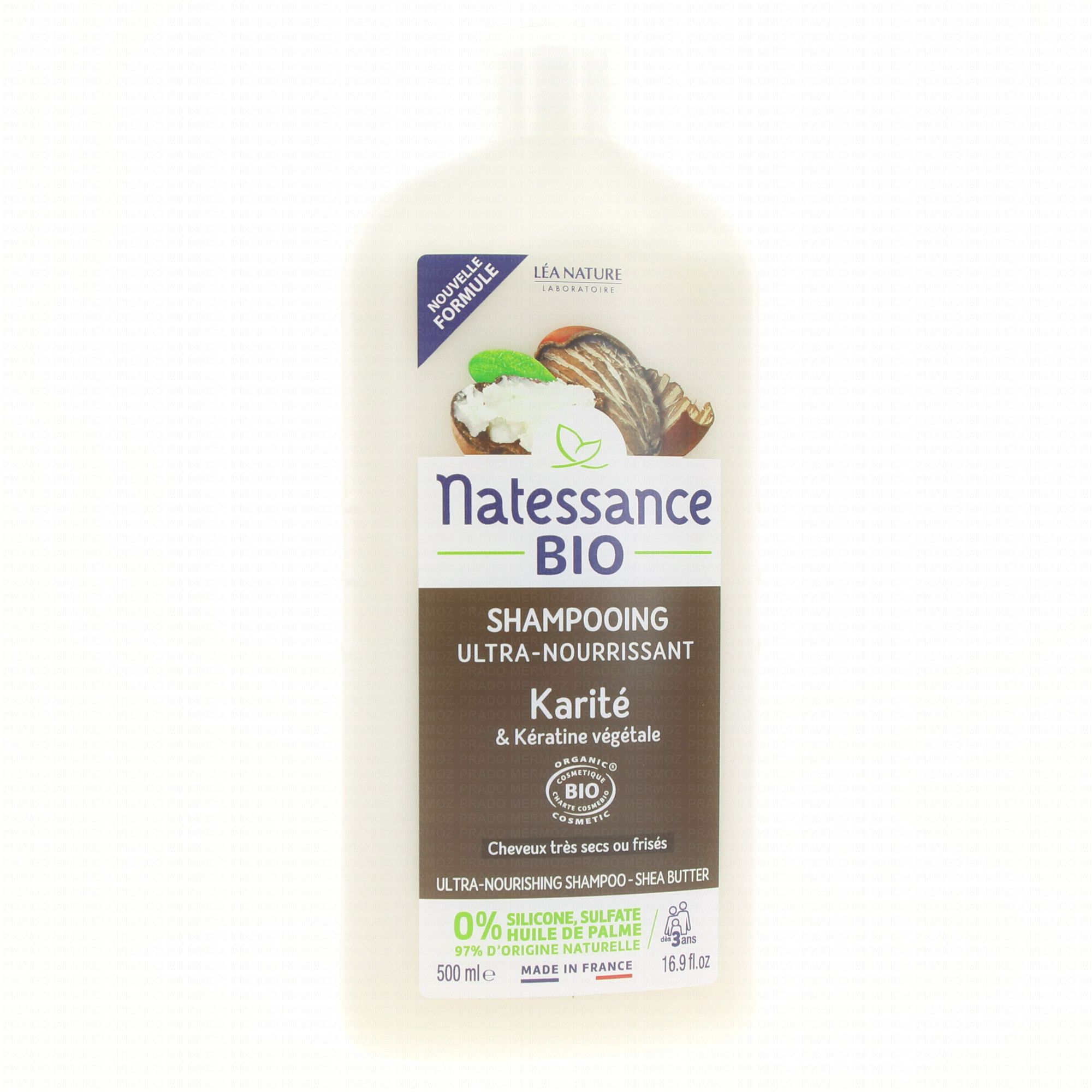 Natessance Shampoing Ultra-Nourrissant Karité Bio et Kératine Végétale est un shampoing qui nettoie délicatement les cheveux difficiles à coiffer. Il est enrichi en beurre de karité Bio qui apporte nutrition et brillance aux cheveux La kératine végétale brevetée contribue à les protéger et les régénérer.