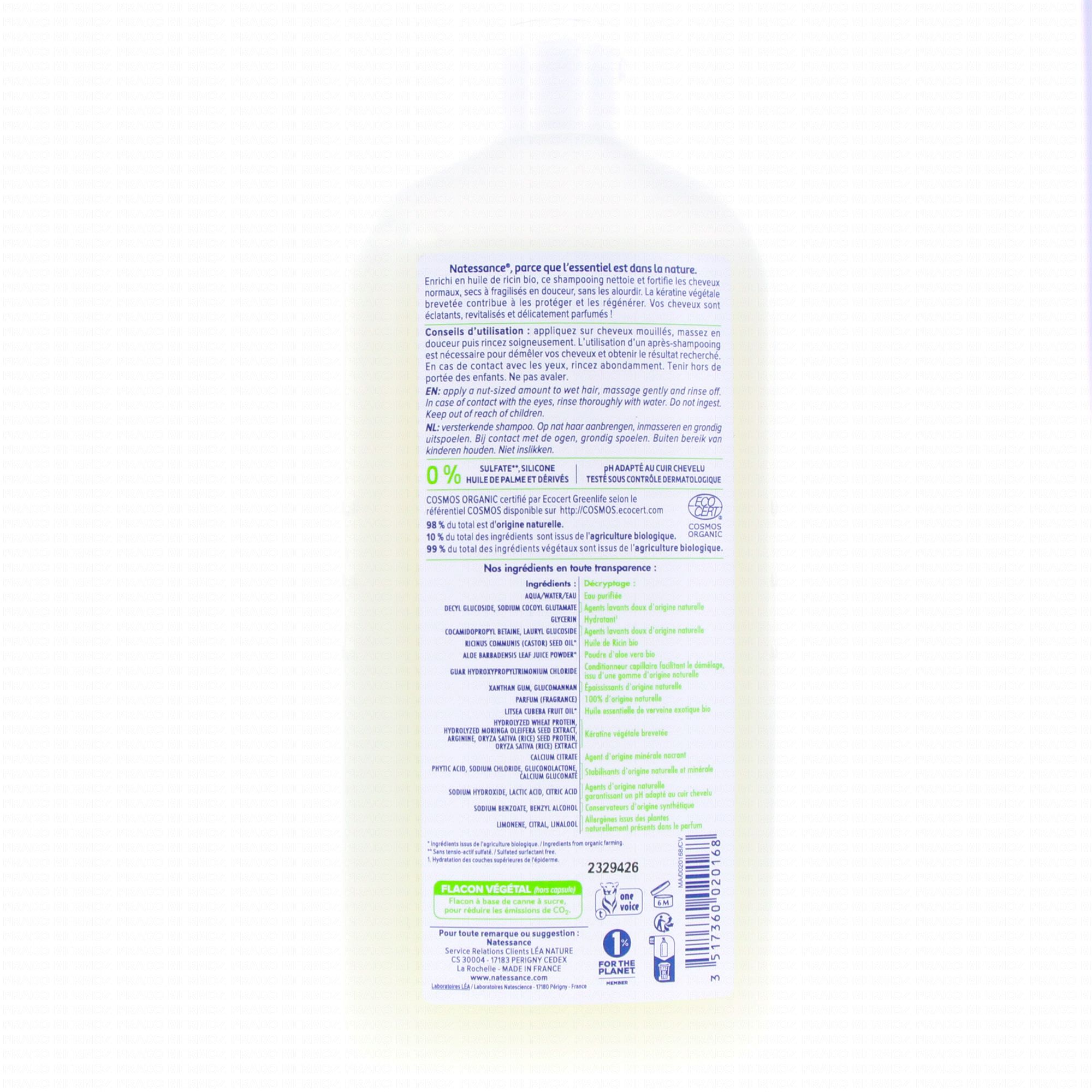 NATESSANCE Shampooing fortifiant Ricin bio et kératine végétale flacon 500ml