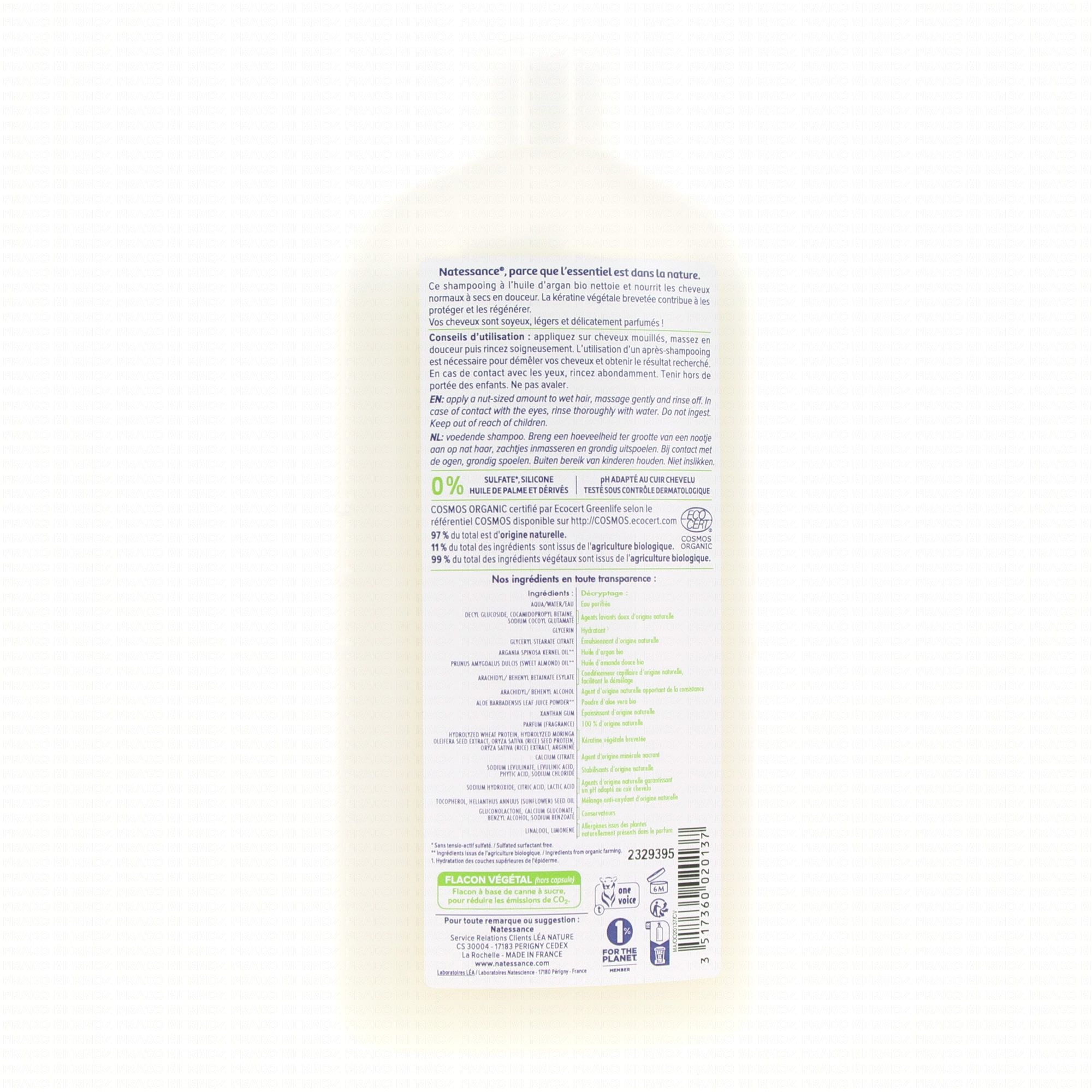 NATESSANCE Shampooing nourrissant argan & kératine végétale flacon 500ml