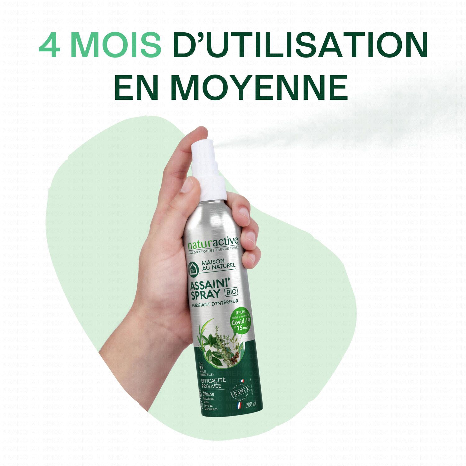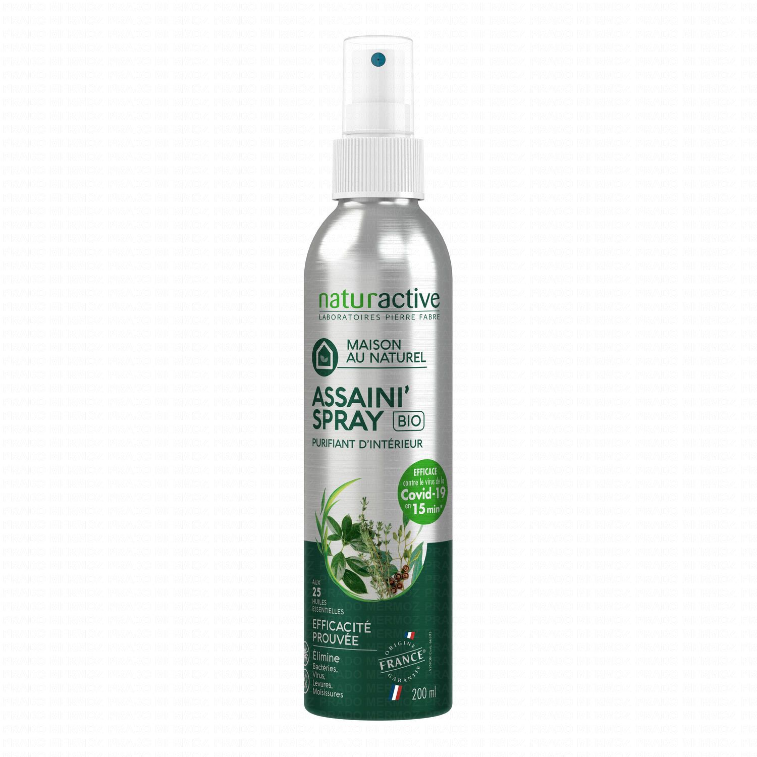 Parfait assainissant d'intérieur, le spray Bio Naturactive Assaini'Spray est un résultat de 25 huiles essentielles biologiques reconnues pour leurs propriétés assainissantes et parfumantes. Ingrédients issus de l'agriculture biologique certifiée Ecocert. Conditionnement : vaporisateur sans gaz propulseur.