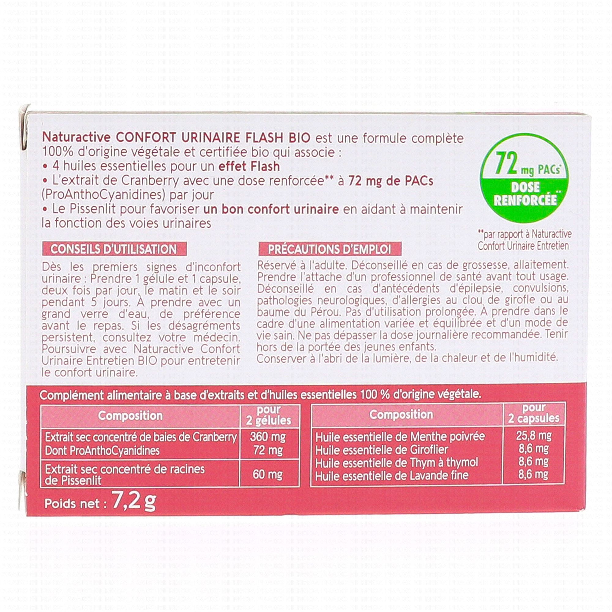 NATURACTIVE Confort Urinaire Flash Bio Urisanol 10 gélules + 10 capsules contient les éléments suivants :