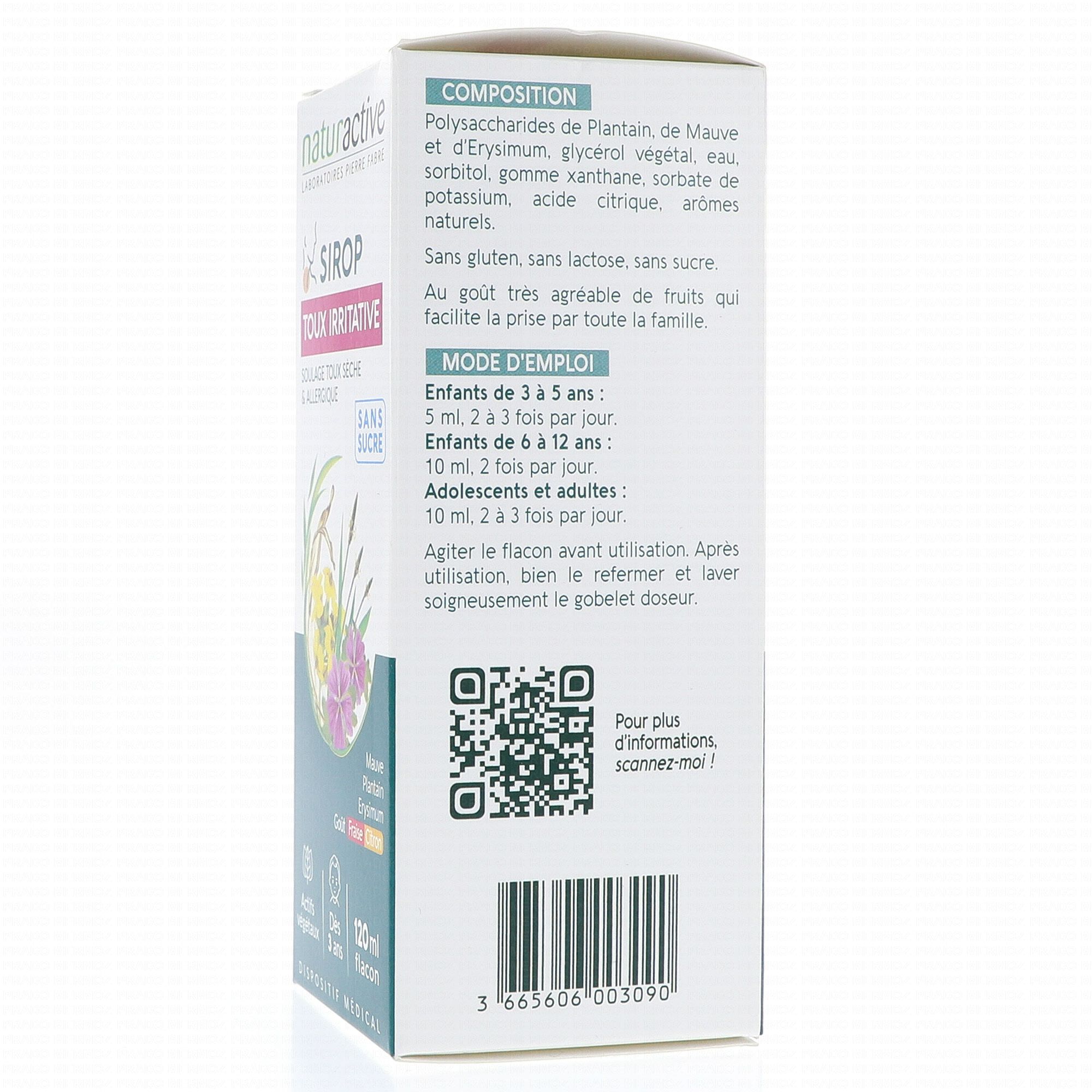 NATURACTIVE Sirop Tous Irritative 120ml contient les éléments suivants :
