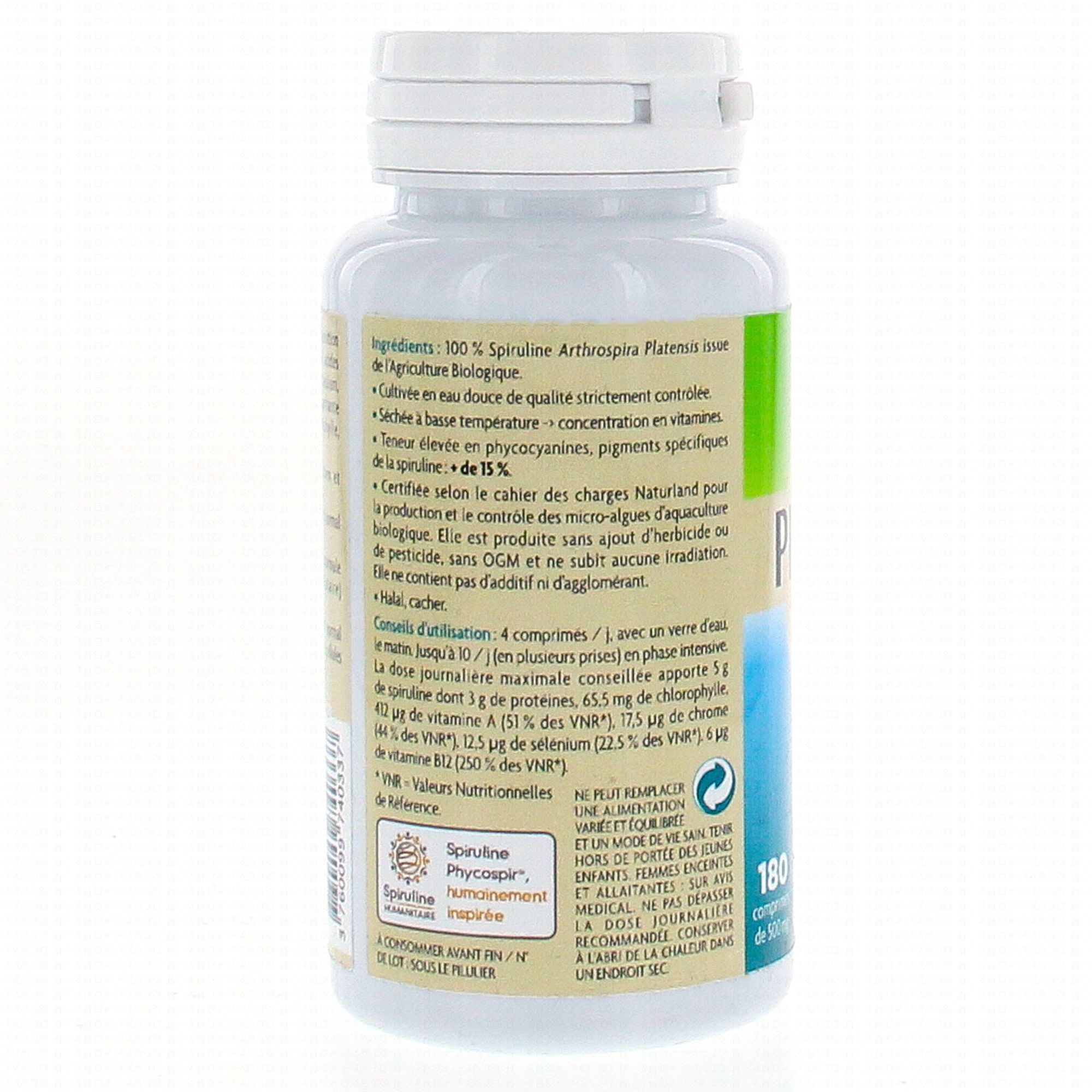NATURAL NUTRITION Spiruline phycospir contient les éléments suivants :