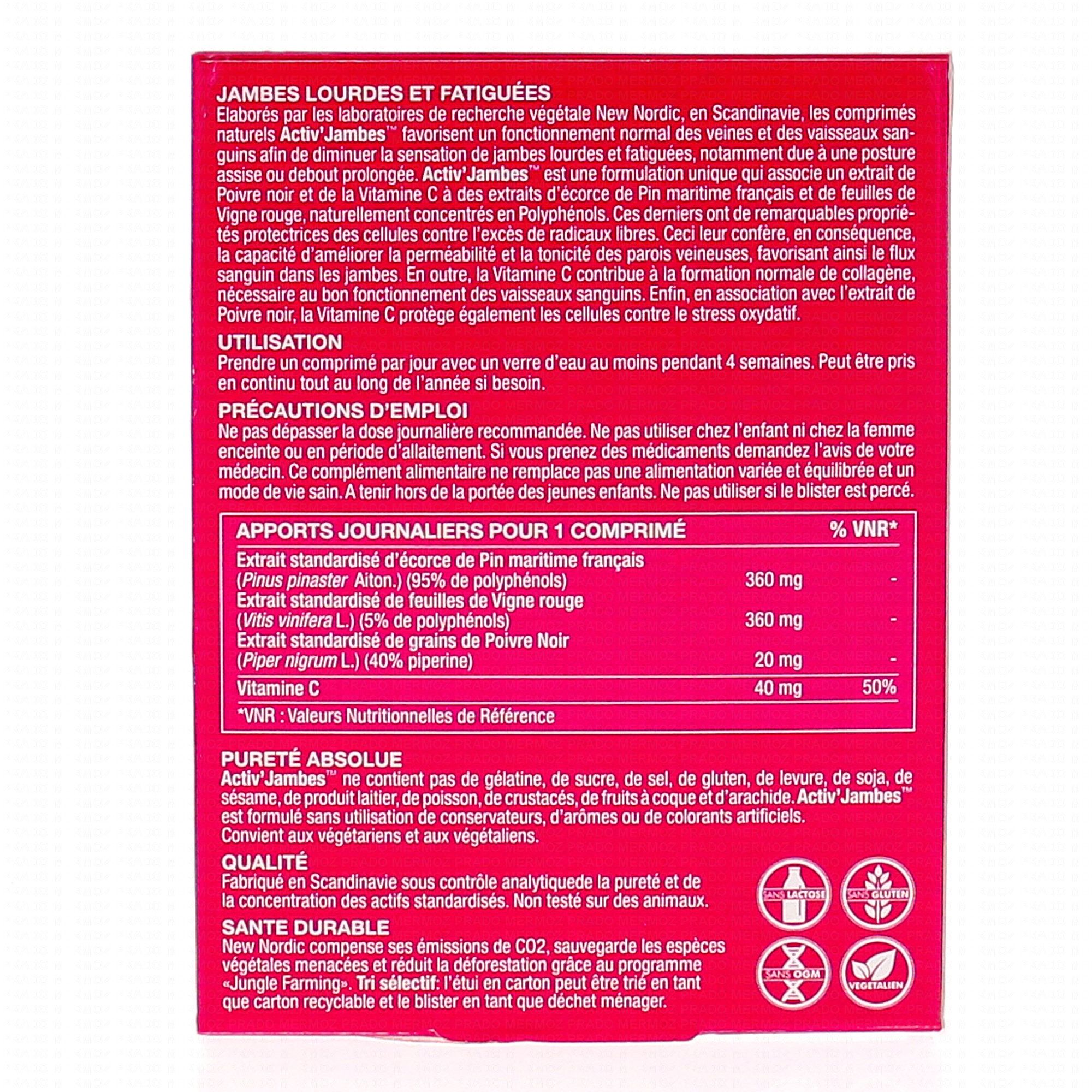 NEW NORDIC Activ' Jambes 30 comprimés contient les éléments suivants :