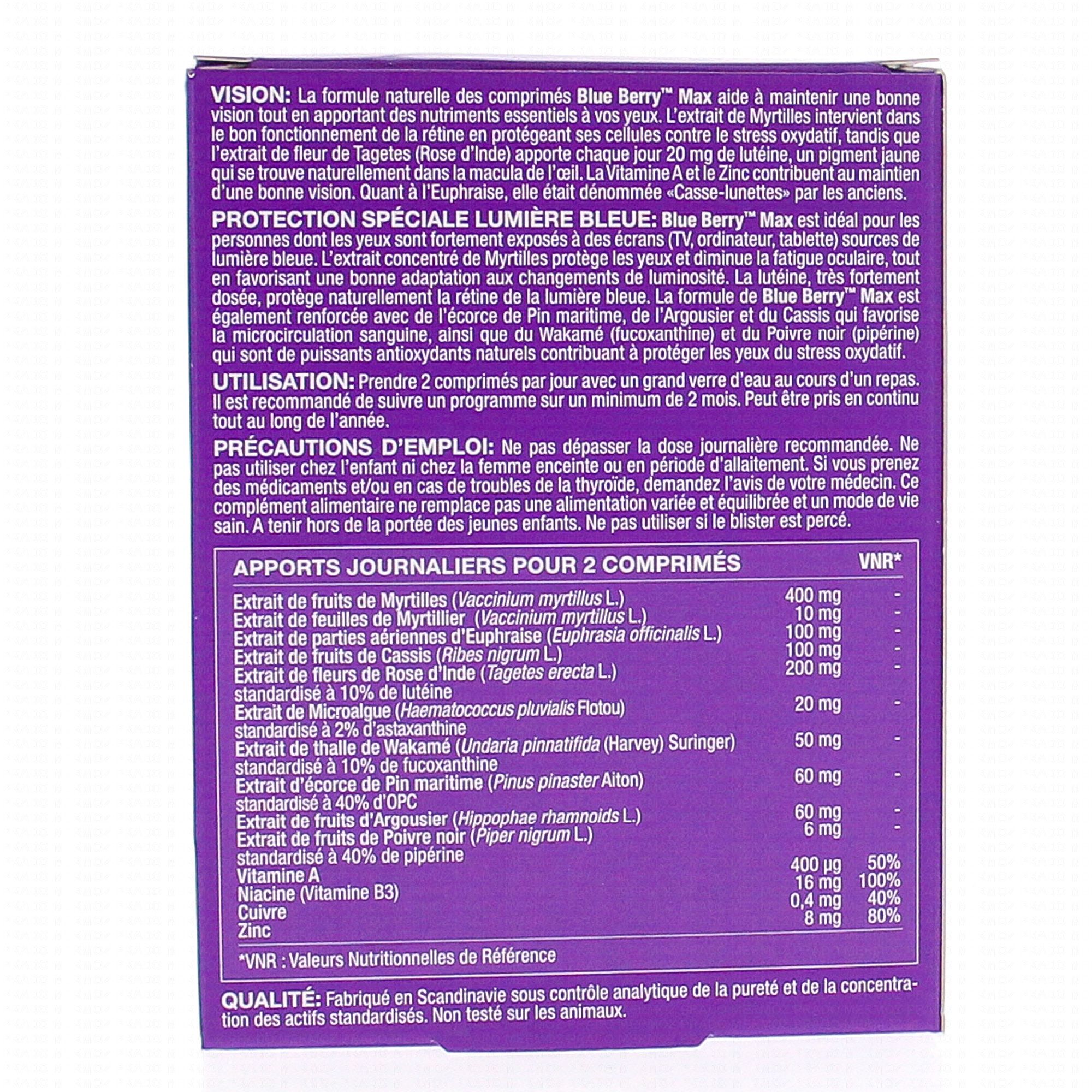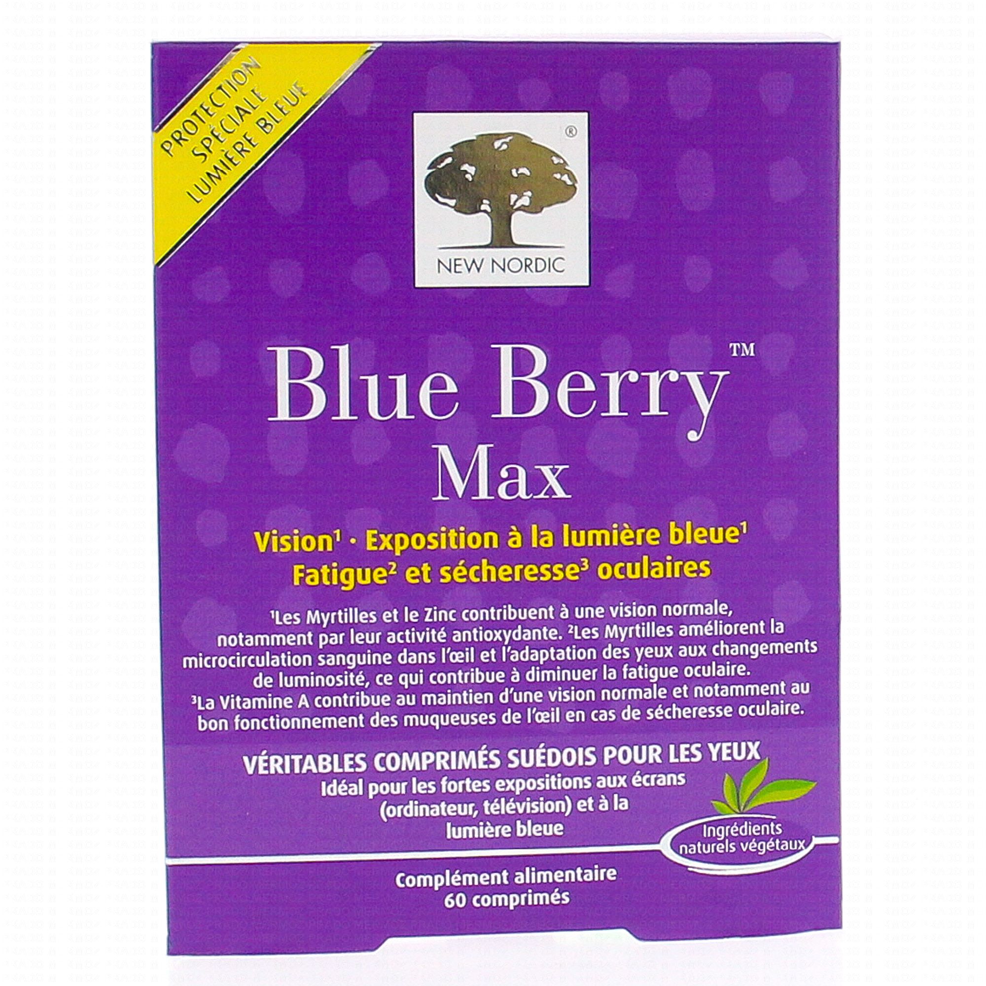 NEW NORDIC Blue Berry Max 60 comprimés contient les éléments suivants :