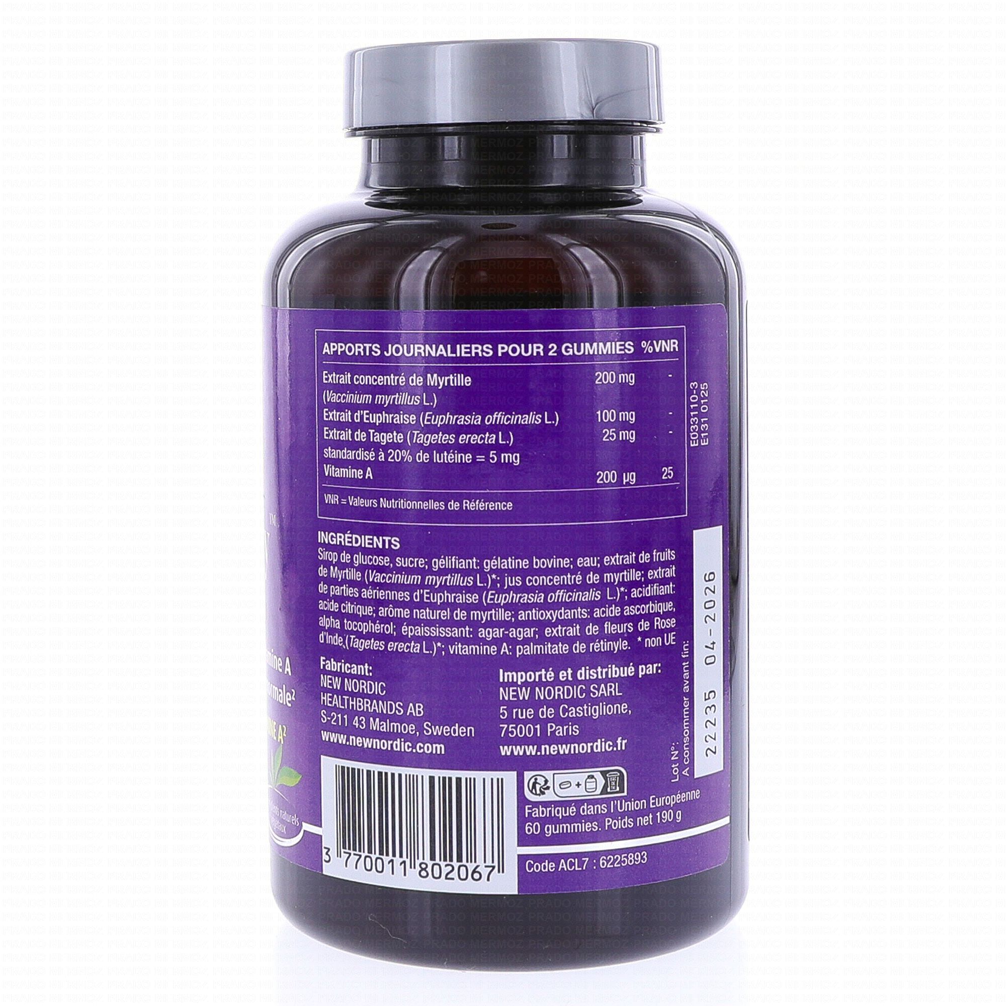 NEW NORDIC Blue Berry Yeux et Vision x60 Gummies contient les éléments suivants :