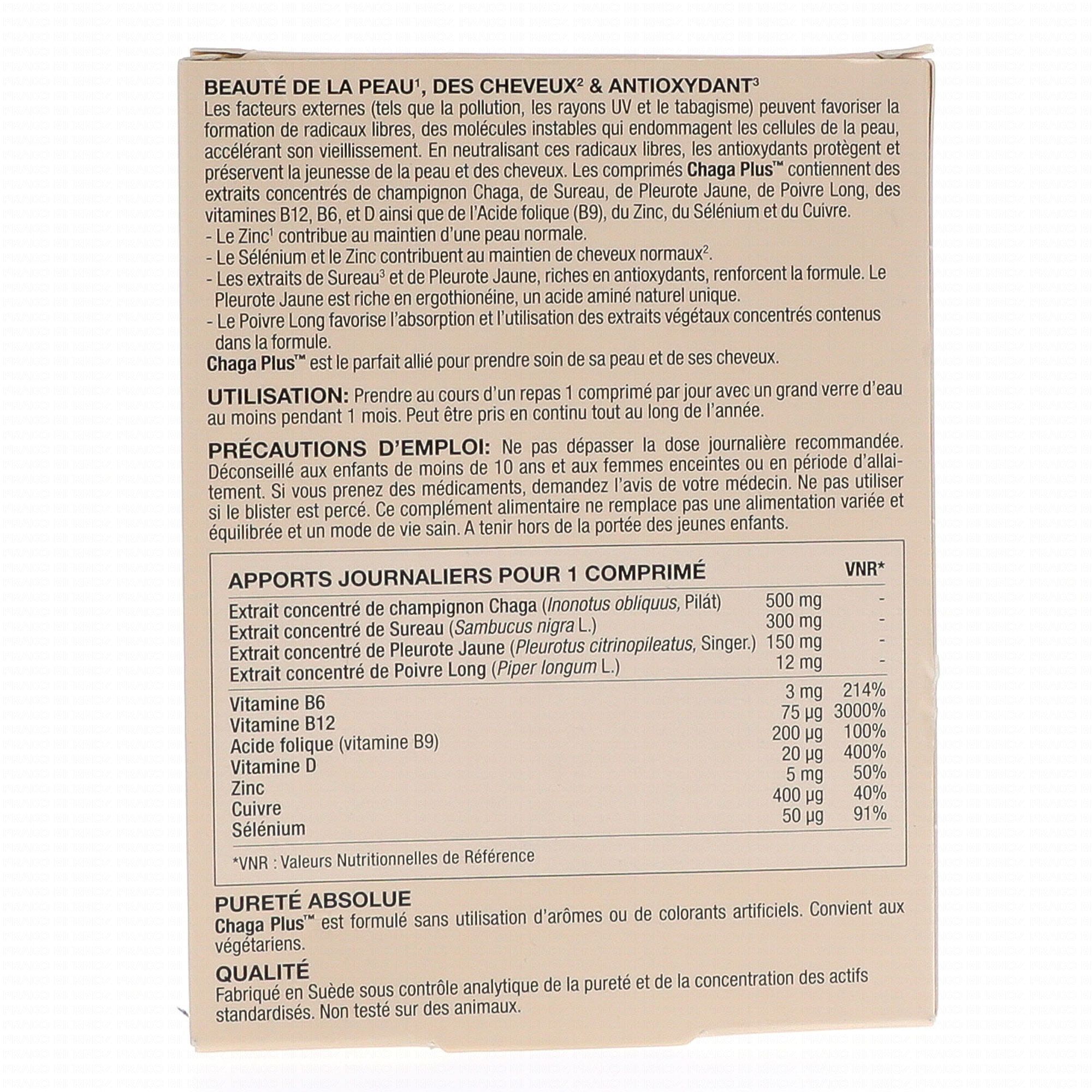 NEW NORDIC Chaga Plus 30 comprimés contient les éléments suivants :