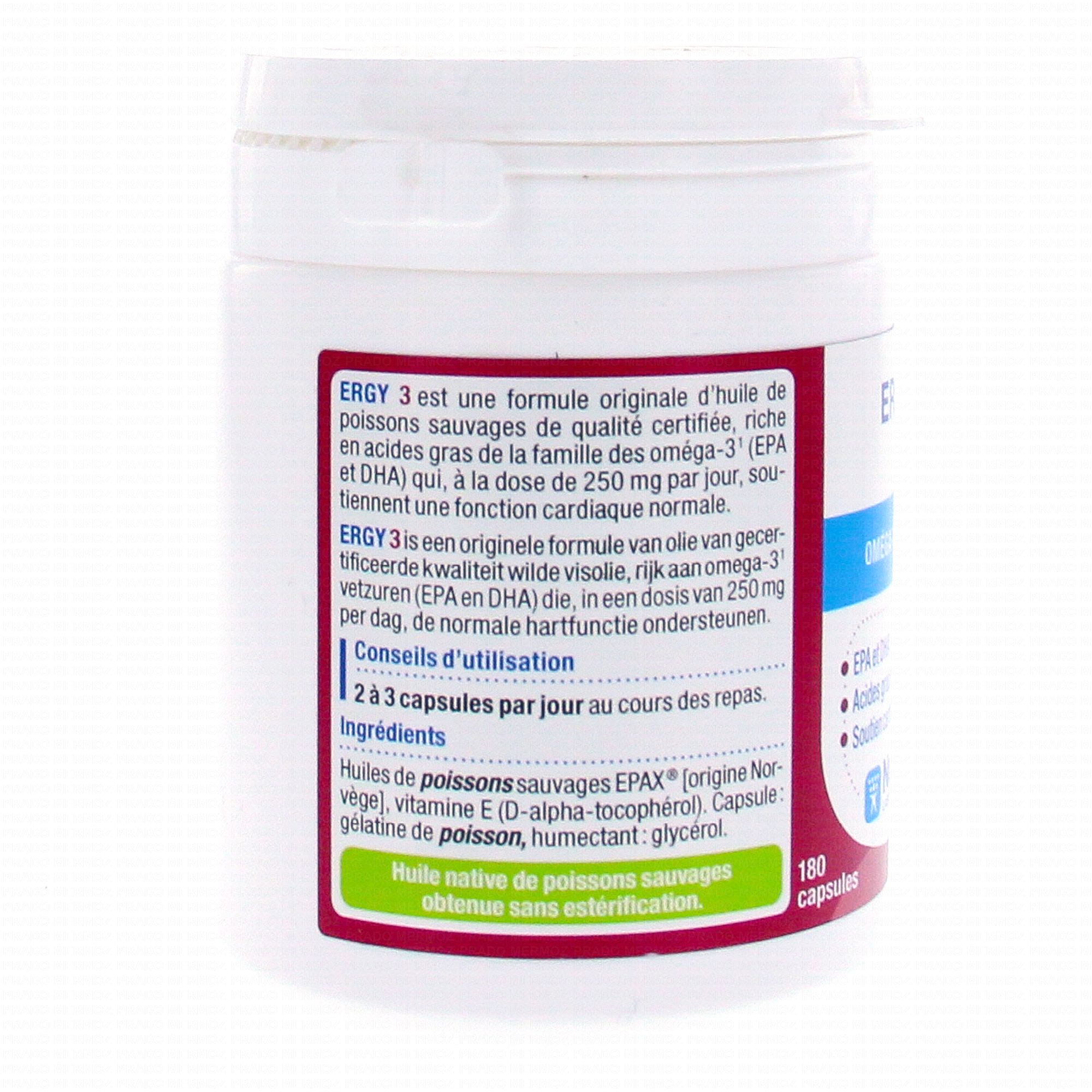NUTERGIA Ergy 3 180 capsules contient les éléments suivants :