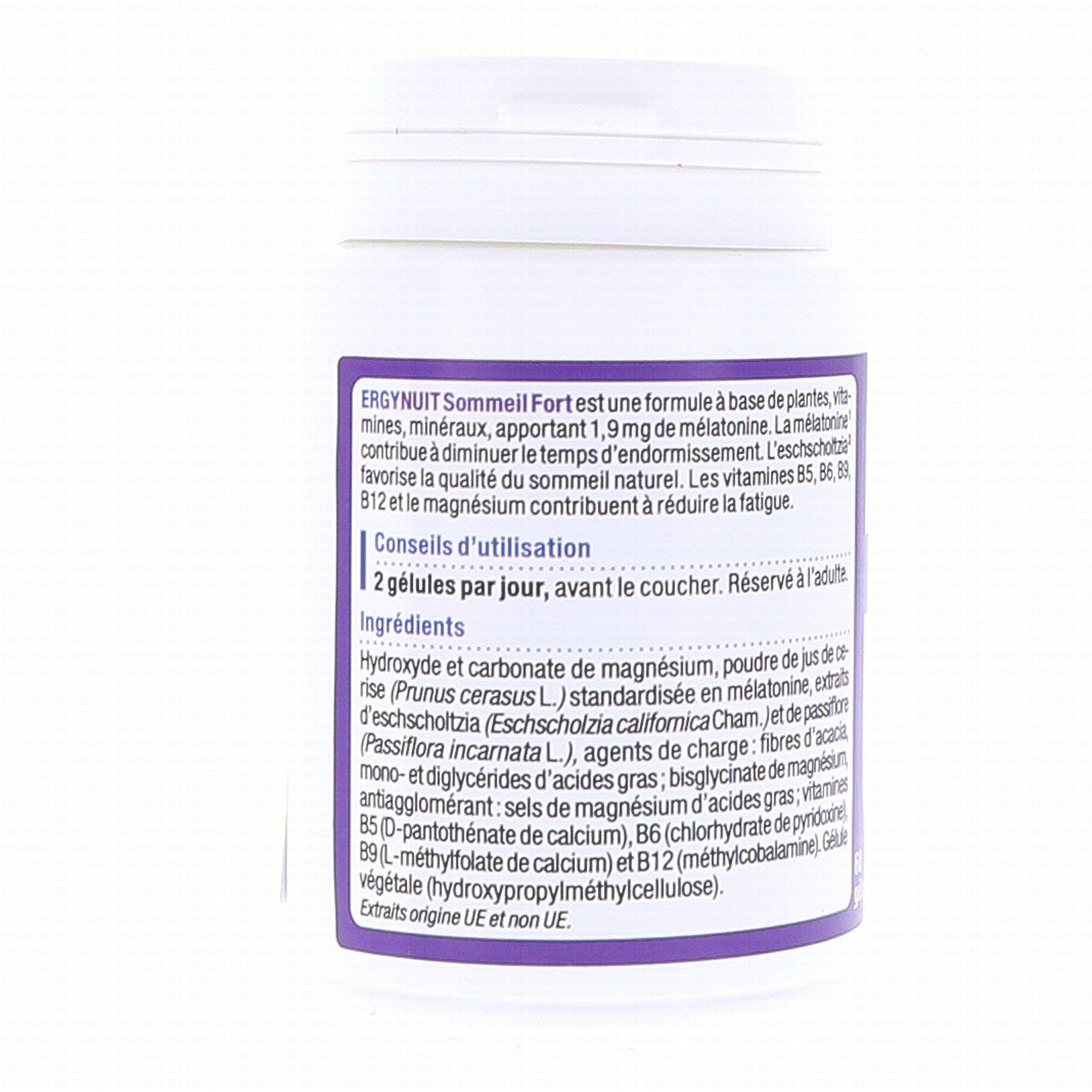 NUTERGIA ErgyNuit Sommeil Fort x60 gélules contient les éléments suivants :
