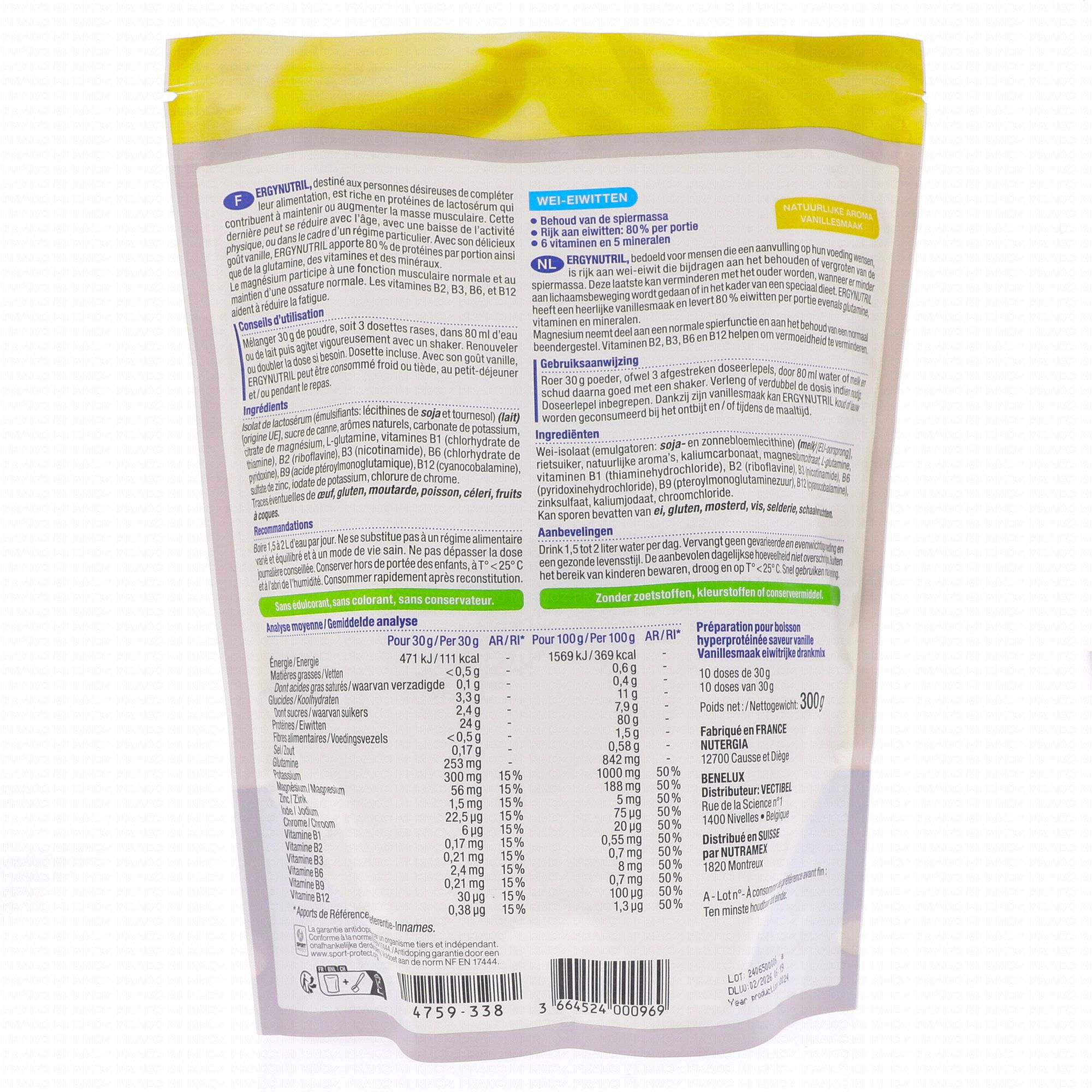 NUTERGIA Ergynutril - Protéines de lactosérum vanille 300g