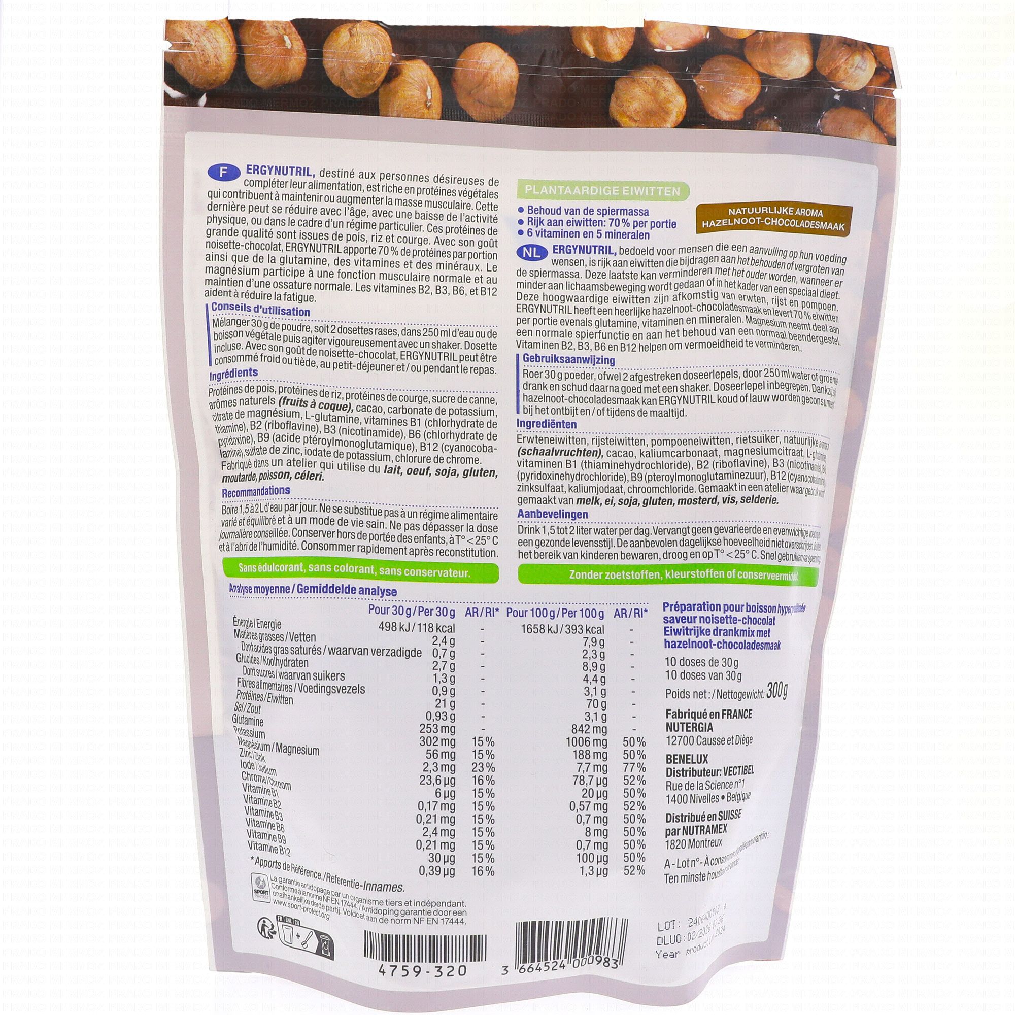 NUTERGIA Ergynutril - Protéines végétales Noisette-chocolat 350g