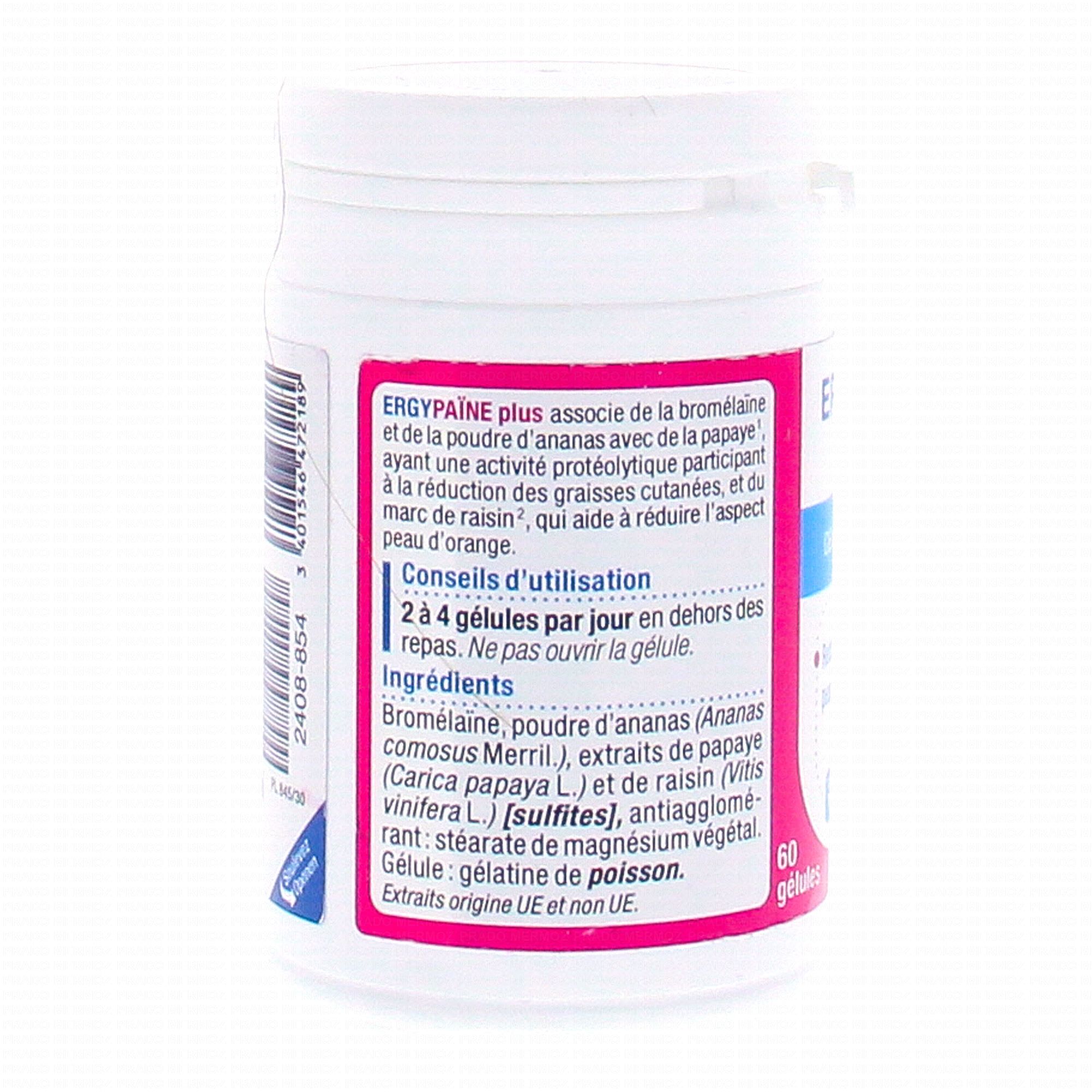 NUTERGIA Ergypaïne plus est un complexe qui contribue à drainer les tissus avec de la cellulite grâce à la broméline qui est une enzyme protéolytique contenue dans l'ananas et grâce à la papaye.