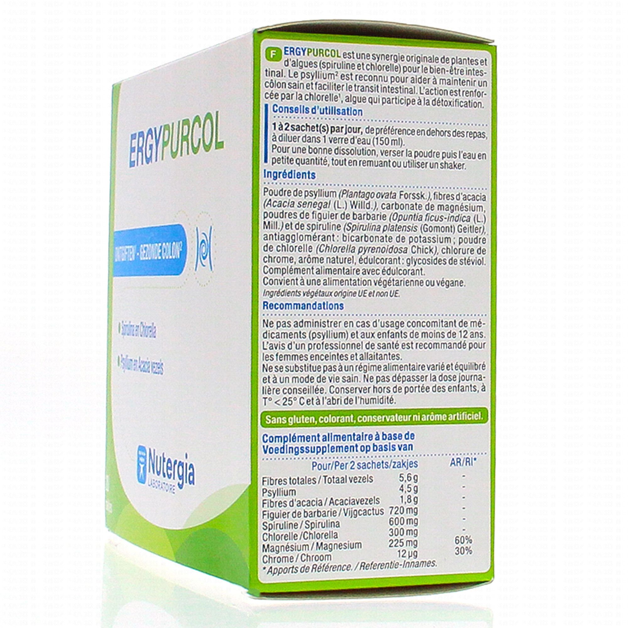 NUTERGIA Ergypurcol - Détoxifier côlon sain x20 sachets contient les éléments suivants :