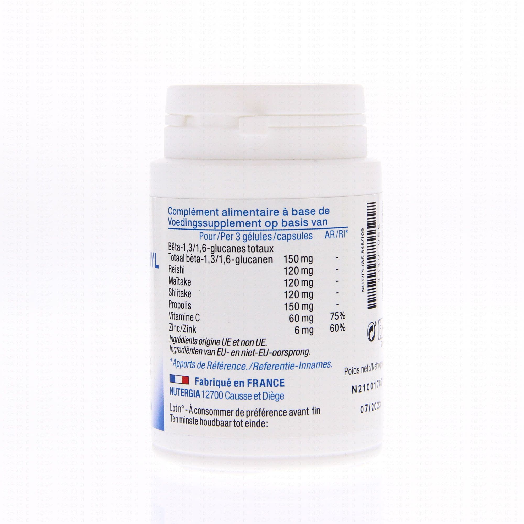 NUTERGIA Ergystimyl immunité 60 gélules contient les éléments suivants :
