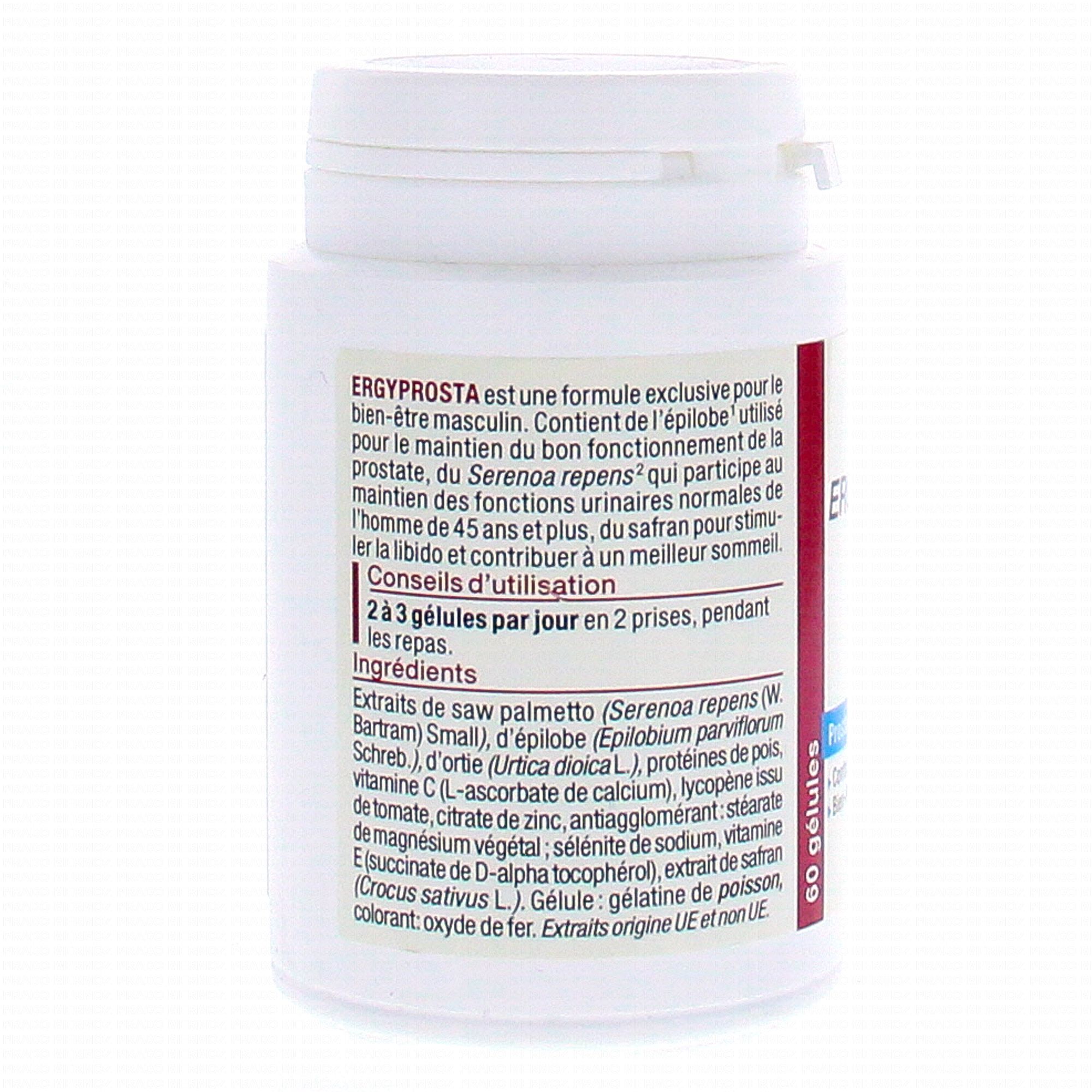 NUTERGIA Eryprosta x60 gélules contient les éléments suivants :