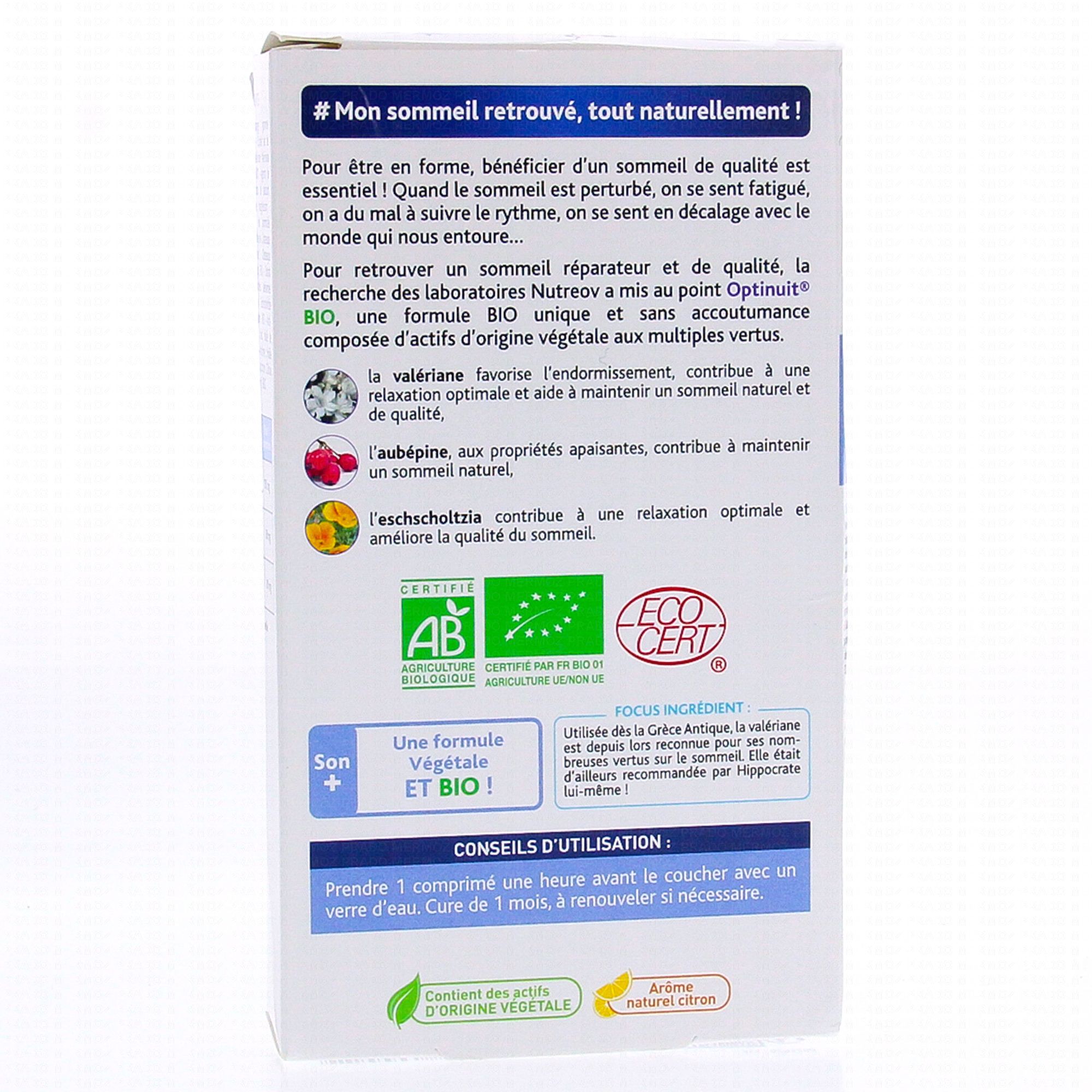 NUTREOV Optinuit - Sommeil bio 30 comprimés contient les éléments suivants :
