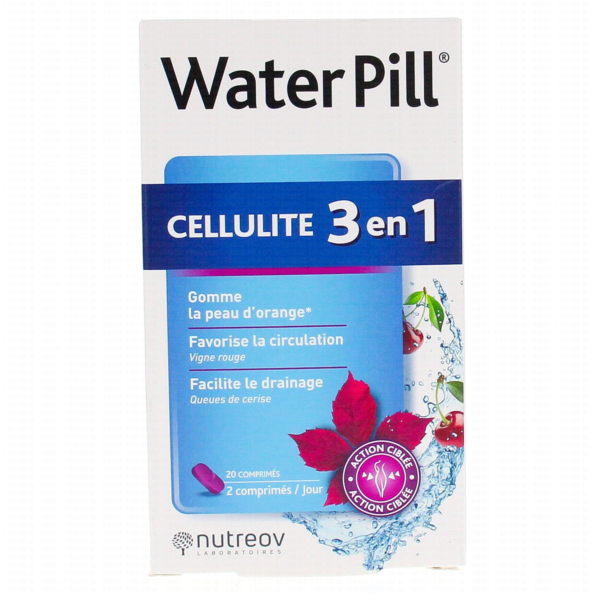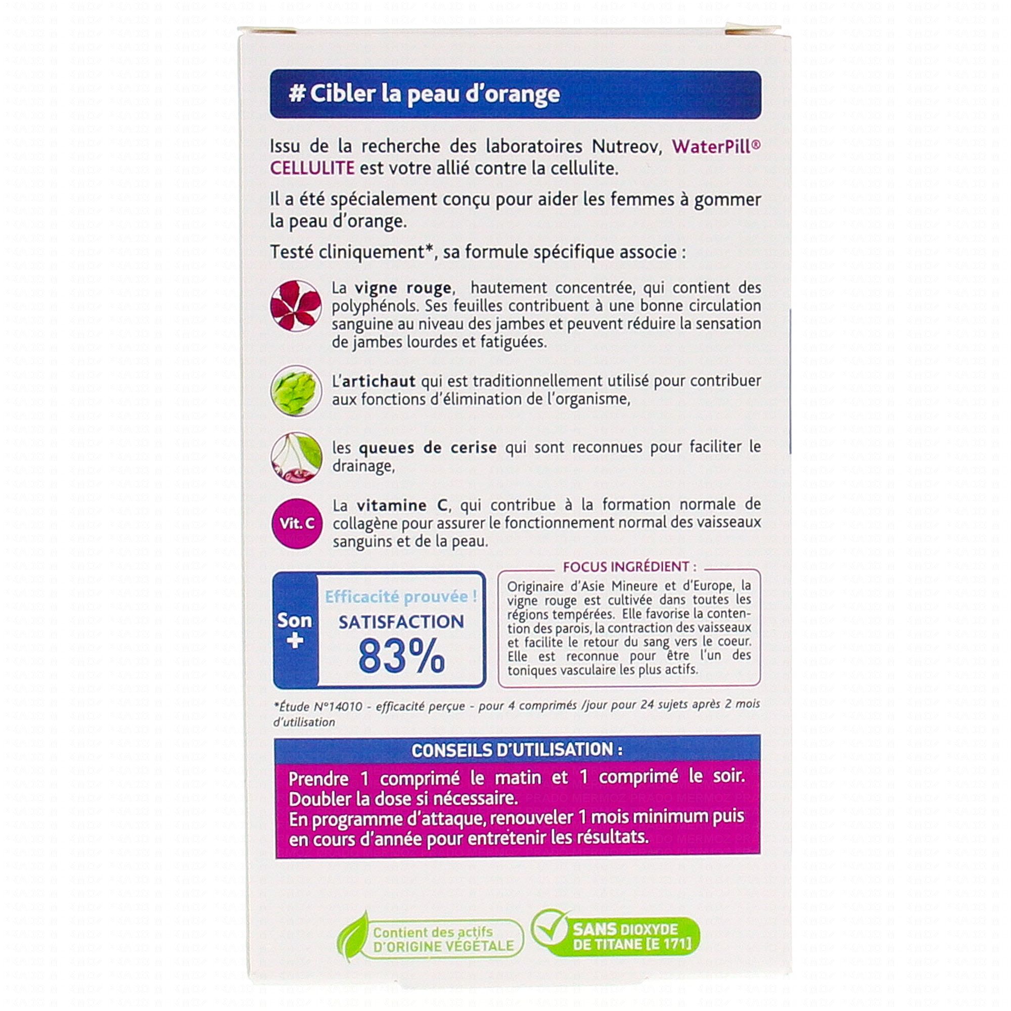 NUTREOV Waterpill cellulite 20 comprimés grace à la queue de cerise traditionnellement utilisée dans les fonctions d'élimination de l'organisme, joue un rôle dans le contrôle du poids grâce à la vigne rouge.