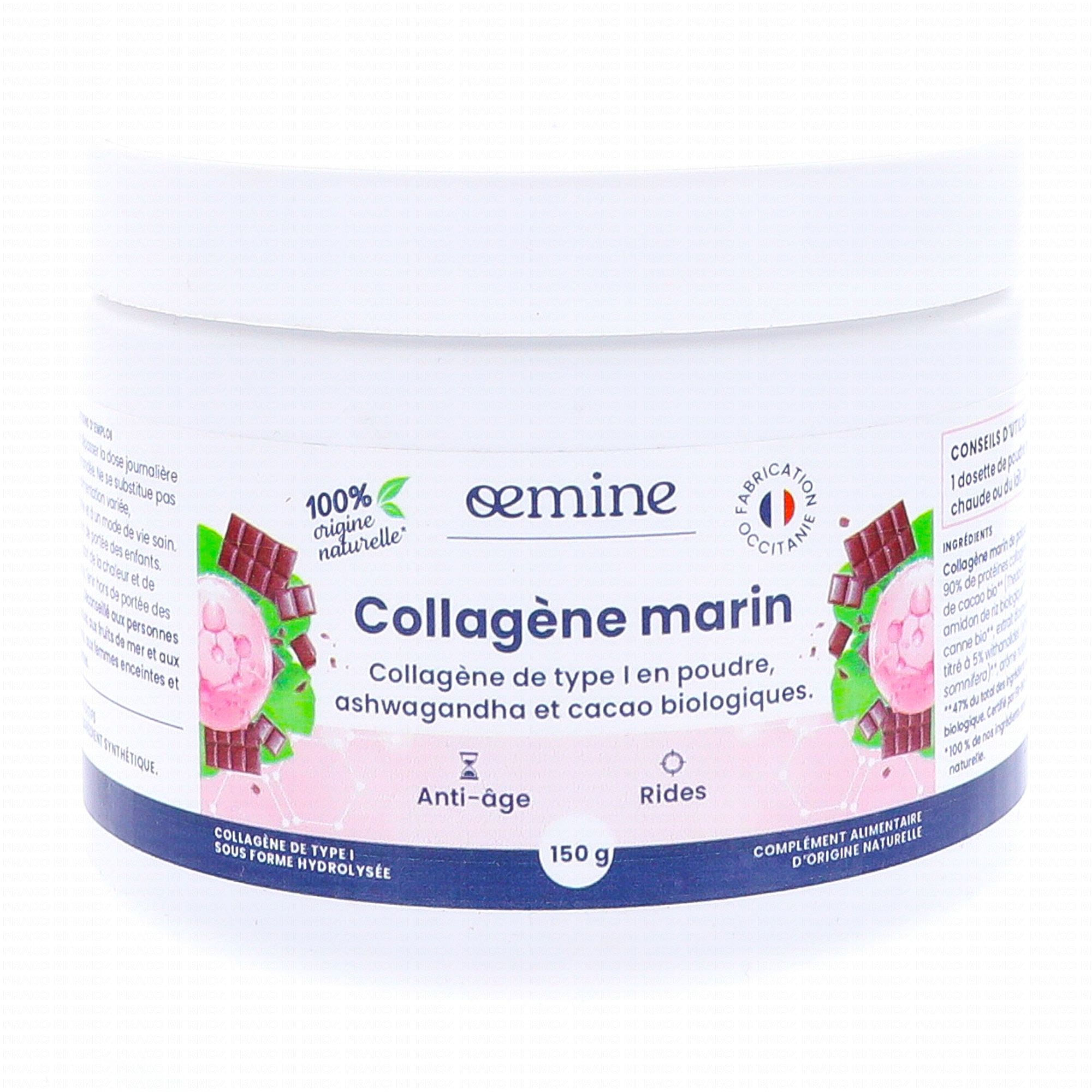 OEMINE Collagène marin en poudre pot 150g contient les éléments suivants :