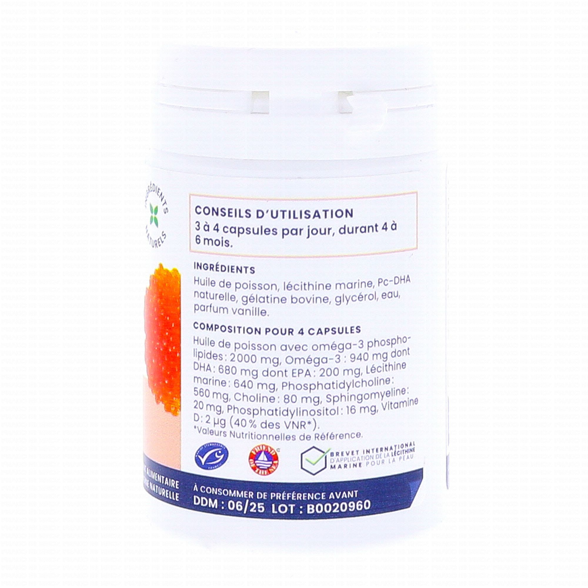 Lécithine marine, maltodextrine de maïs, algue laminaire, silice végétale, gélule de gélatine marine.