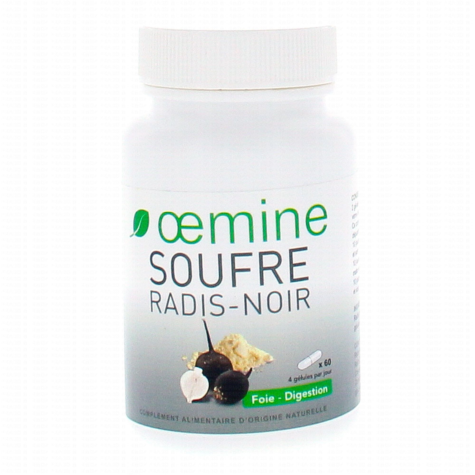 OEMINE Soufre Radis Noir 60 gélules contient les éléments suivants :