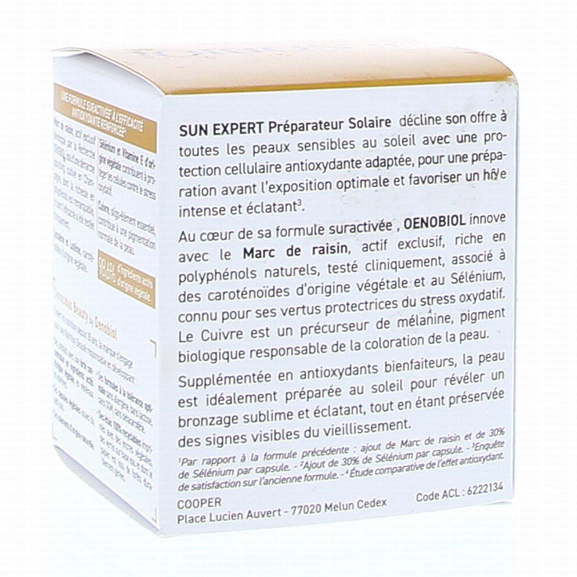 OENOBIOL Sun expert Préparateur solaire peaux sensibles x30 capsules contient les éléments suivants :