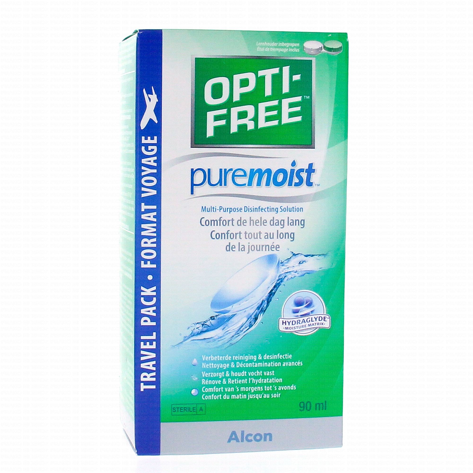 Pure moist par opti-free est un liquide de nettoyage de lentilles ayant plusieurs actions. Son action dé contaminante puissante et son action hydratante permettent un confort et une hydratation de l'œil toute la journée tout en respectant les yeux sensibles.