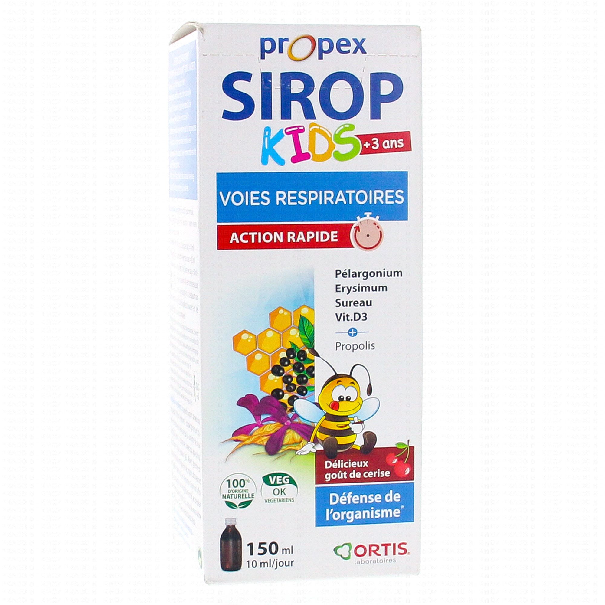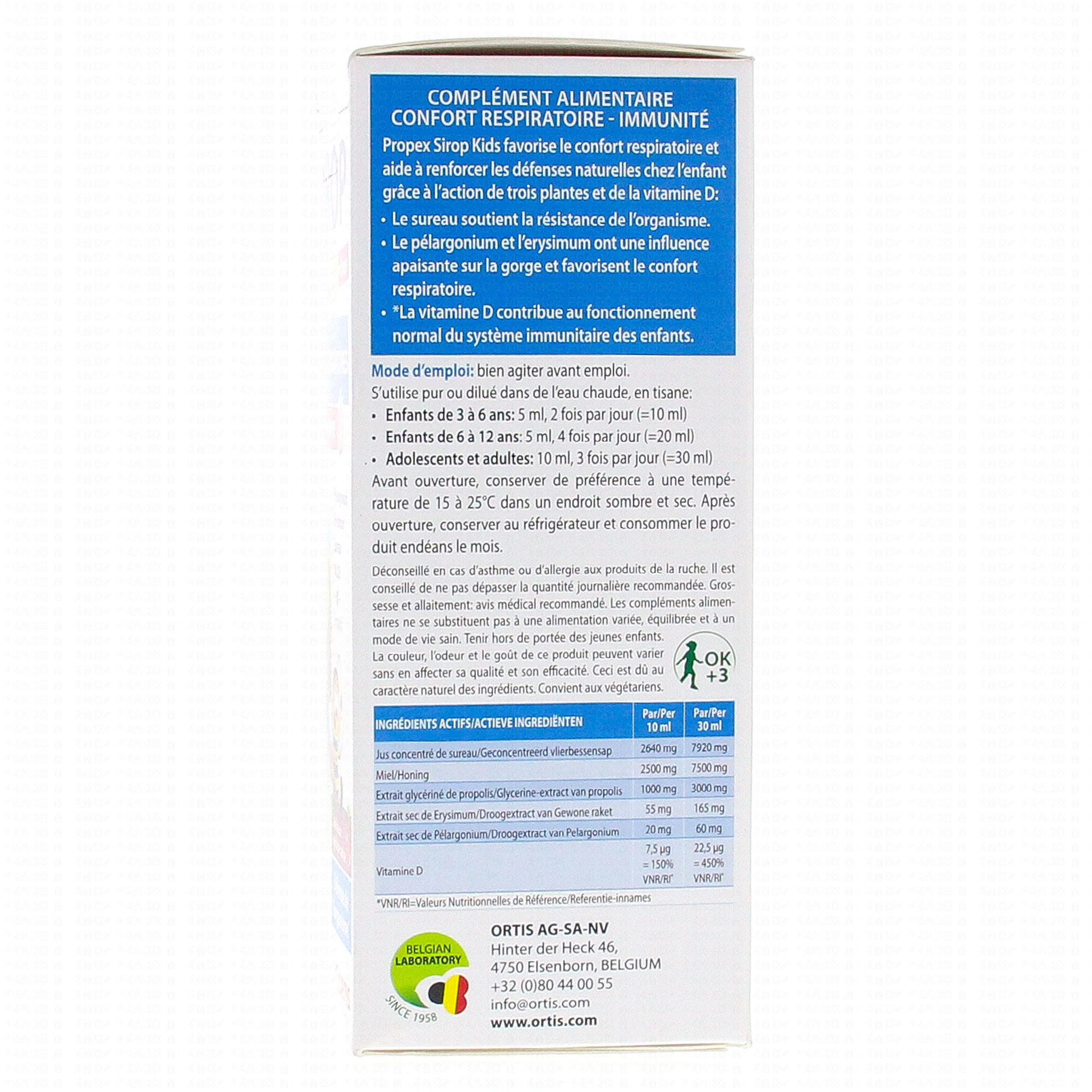 ORTIS Propex Sirop Kids Voies respiratoires 150ml contient les éléments suivants :