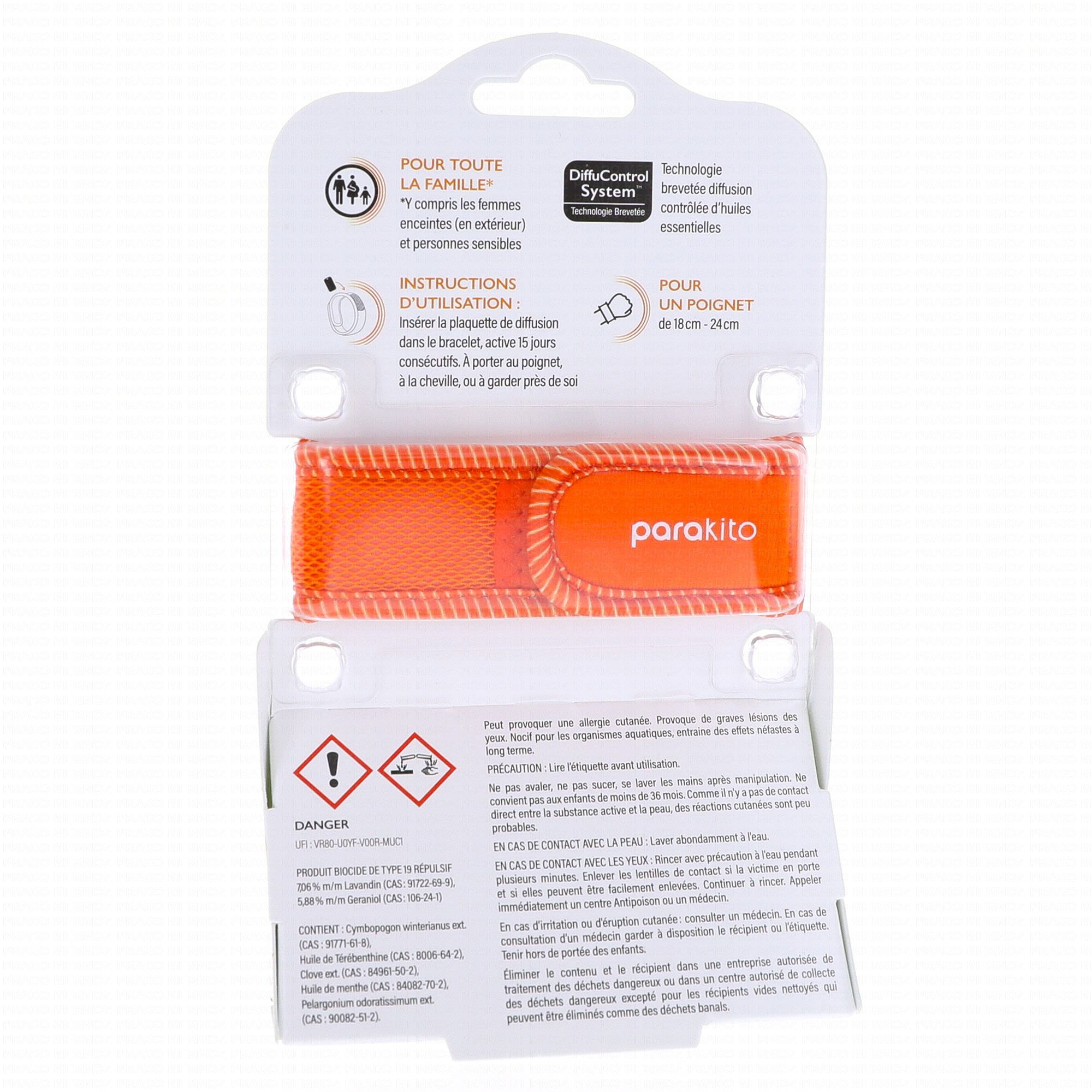 Les bracelets anti moustiques rechargeables PARAKITO assurent une diffusion contrôlée d'huiles essentielles qui protègent des moustiques. Une plaquette vous assure jusqu'à 15 jours d'efficacité, il faut donc la changer dans le bracelet tous les 15 jours. Adaptés à un tour de poignet de 18cm-24cm ils résistent à l'eau et peuvent être utilisés durant toutes les activités.