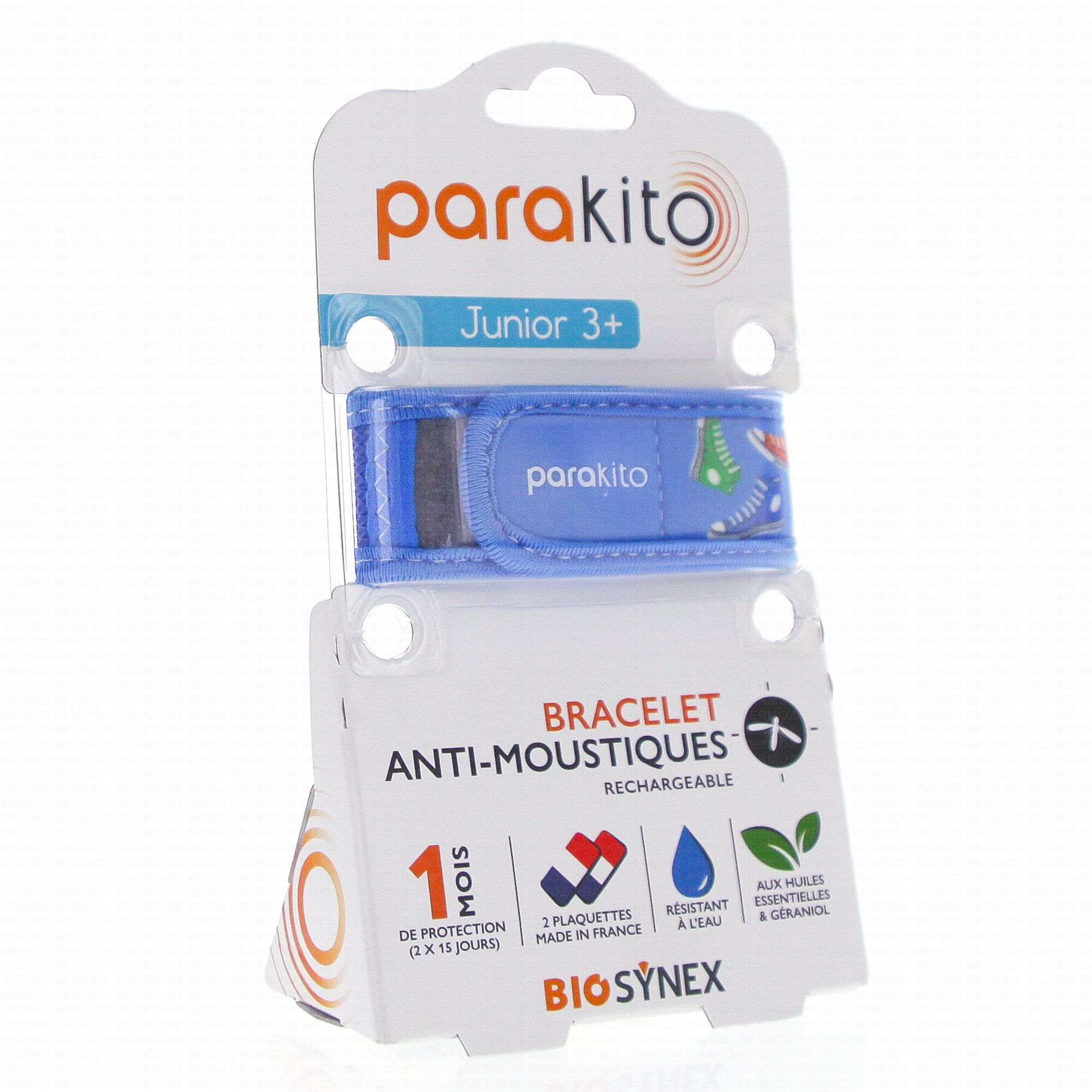 Les bracelets anti moustiques rechargeables PARAKITO assurent une diffusion contrôlée d'huiles essentielles et de g&raniol qui protègent des moustiques. Une plaquette vous assure jusqu'à 15 jours d'efficacité, il faut donc la changer dans le bracelet tous les 15 jours. Adaptés aux enfants de plus de 3 ans, et résistants à l'eau ils peuvent être utilisés durant toutes les activités.